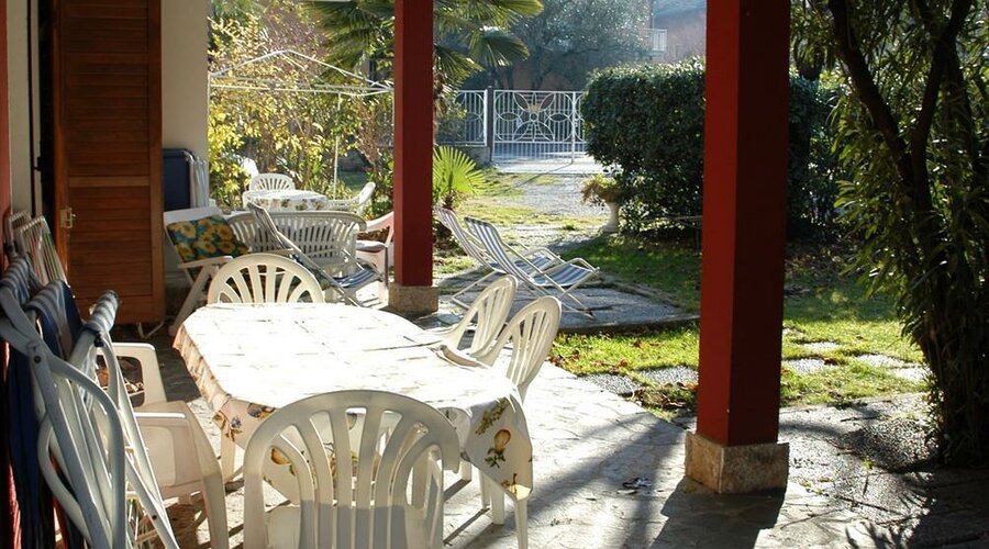The real gem? A lovely outdoor veranda with table and chairs, ideal for enjoying outdoor meals or unwinding in the greenery – even on rainy days.