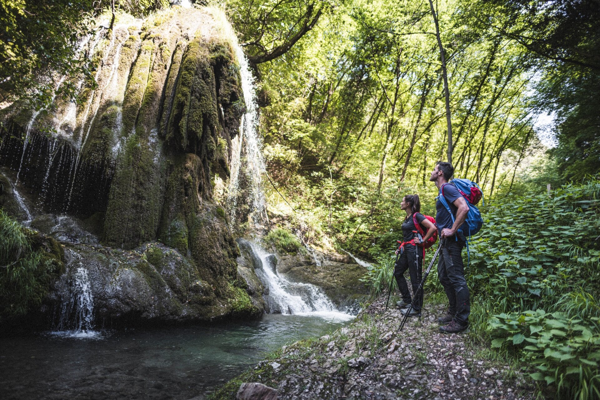 Im Frühling und Sommer ist die Landschaft besonders idyllisch dank der intensiv grünen Natur, die das sprudelnde Wasser umrahmt.