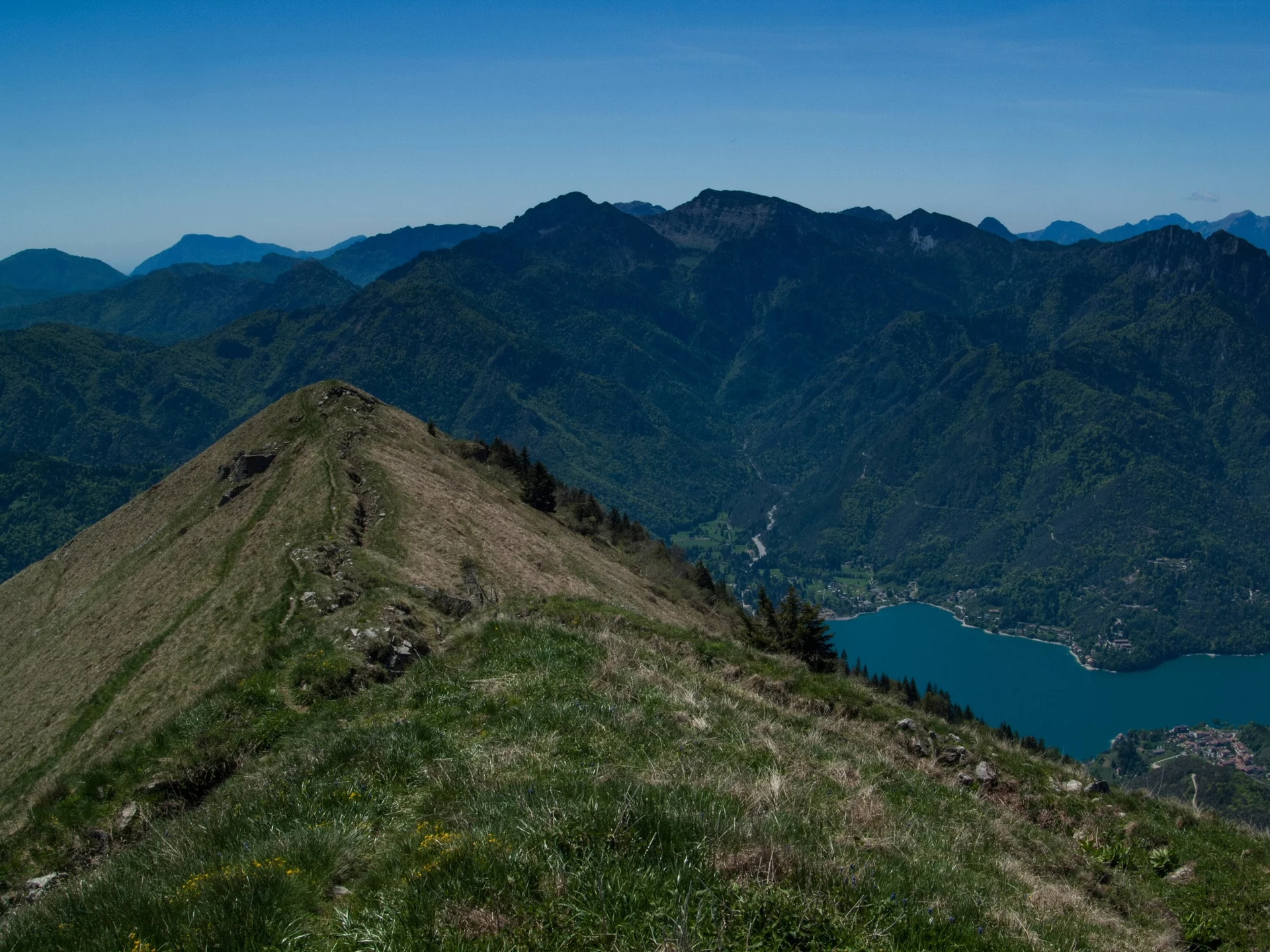 Wälder, Berghütten (malghe), Wiesen mit Narzissen- und Pfingstrosenfeldern, österreichische Schützengräben und atemberaubende Ausblicke auf den Ledrosee finden sich alle entlang des Weges, der nach Dromaè und zum Cima d’Oro (d.h. Goldgipfel) führt, der seinen Namen der Farbe verdankt, die er bei Sonnenuntergang annimmt.