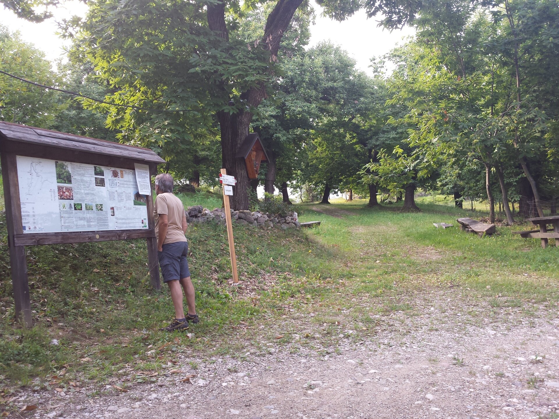 Von Bolognano nimm die Forststraße, die den Berghang hinaufführt bis zu den Tre Croci, kurz nach der Busa dei Capitani. Von hier aus folgst du dem Weg SAT 637 hinunter nach Nago, gehst durch das Stadtzentrum und nimmst den Weg SAT 601 "Sentiero della Pace" zur Malga Zures. Hier folgst du den Schildern nach rechts, und die Forststraße quert die Hänge des Monte Altissimo bis zur Quelle Varno. Nun folgst du einem steilen Abstiegspfad. Der Pfad endet auf einer Forststraße, der du nach links folgst, bis du auf den Busatte-Tempesta-Weg triffst, dem du (rückwärts) folgst, bis du den Busatte-Park erreichst. Von hier ist es nur ein kurzer Abstieg nach Torbole sul Garda. Nimm den Radweg am Seeufer zurück zum Ausgangspunkt.