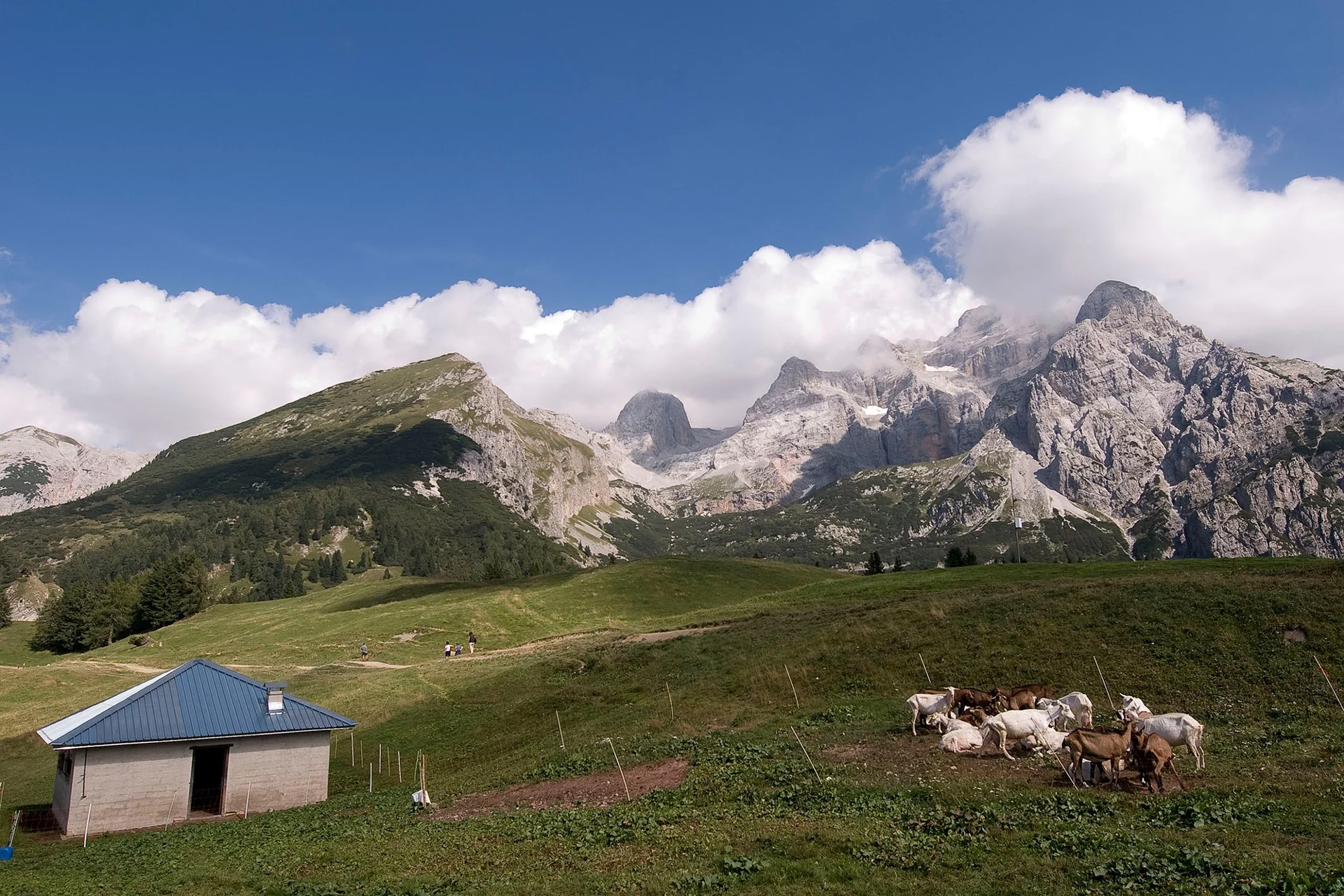 Für den Rückweg haben Sie zwei Möglichkeiten: Entweder Sie wandern auf dem Hinweg zurückoder Sie folgen dem Weg SAT 341 Richtung Val di Sacco. Dieser führt erst über dem Pass „Passo dei XII Apostoli“ und zieht sich dann bergab zur „Busa di Sacco“ und schließlich zur „Baito dei Cacciatori“ (1800m ). Sie folgen weiterhin Weg SAT 341, genießen eine wunderbare Aussicht auf das Tal „Val d'Algone“ und kreuzen die Hänge der Alm „Pala dei Mughi“. Schließlich erreichen Sie die Weiden der Malga Movlina (1.45 St.).