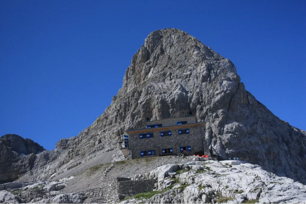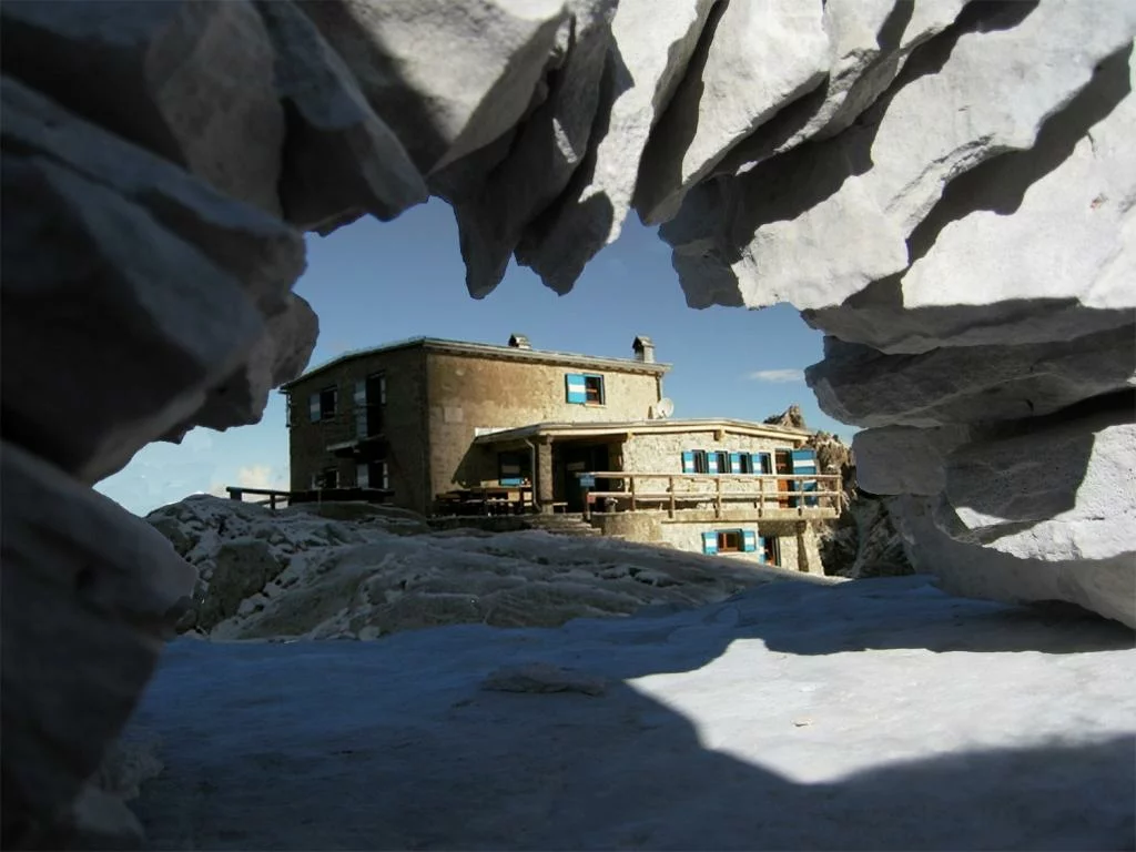 Nun geht es rechts dem Weg SAT 307 entlang und ein wenig bergab zur Ebene „Pian di Nardis“ (1822 m). Ein wenig abenteuerlich wird es auf dem Teilstück „Scala Santa“, einem holprigen Pfad, der mit Fixseilen gesichert ist. Sie wandern weiter zum steilen Geröllfeld. Nachdem Sie noch weitere, allerdings leichtere Geröllfeld überwunden haben, erreichen Sie die Schutzhütte "Rifugio XII Apostoli (2487 m)“ (2.30 St.). Neben dem Rifugio befindet sich die berühmte, in den Fels gebaute Kapelle, die den in den Bergen Verunglückten gewidmet ist.