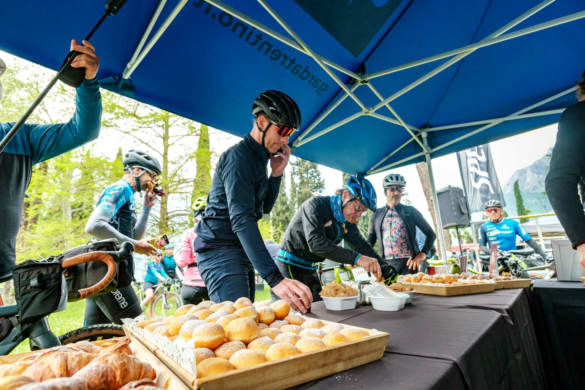 Wenn du am Maxxis Gravel Garda Trentino - Long Track mit 100 km Länge und 1.750 m Höhendifferenz teilnimmst, kannst du atemberaubende Ausblicke genießen und Trentiner Spezialitäten an den Verpflegungspunkten probieren.