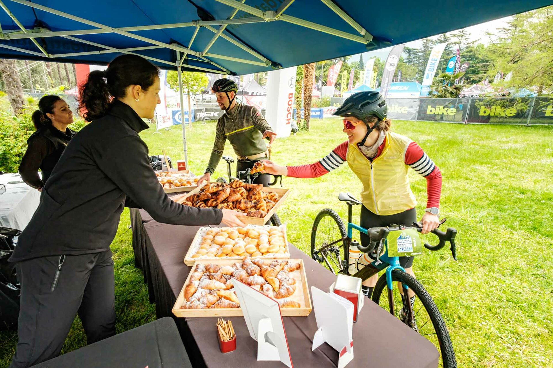 Wenn du am Maxxis Gravel Garda Trentino – Short Track mit 65 km Länge und 451 m Höhenunterschied teilnimmst, kannst du atemberaubende Aussichten genießen und Trentino-Spezialitäten an den Verpflegungspunkten probieren.
