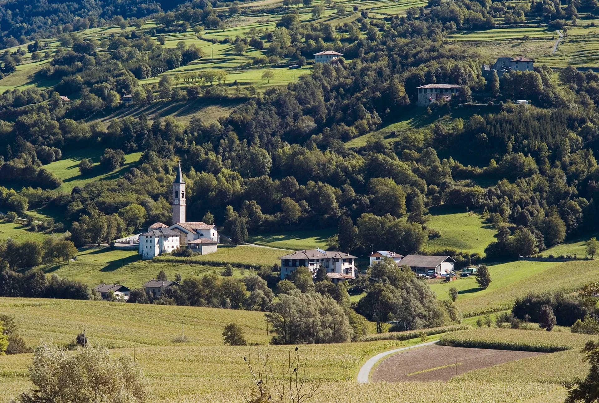 Die zweite Etappe führt vom Rifugio San Pietro nach Villa Banale, zuerst durch Wiesen und Wälder zwischen dem Monte Biaina und dem Monte Misone und dann auf die Entdeckung der sanften Landschaften der Gebiete Bleggio und Lomaso, mit vielen malerischen Dörfern und geschichtsreichen Kirchen, Burgen und bebauten Feldern.