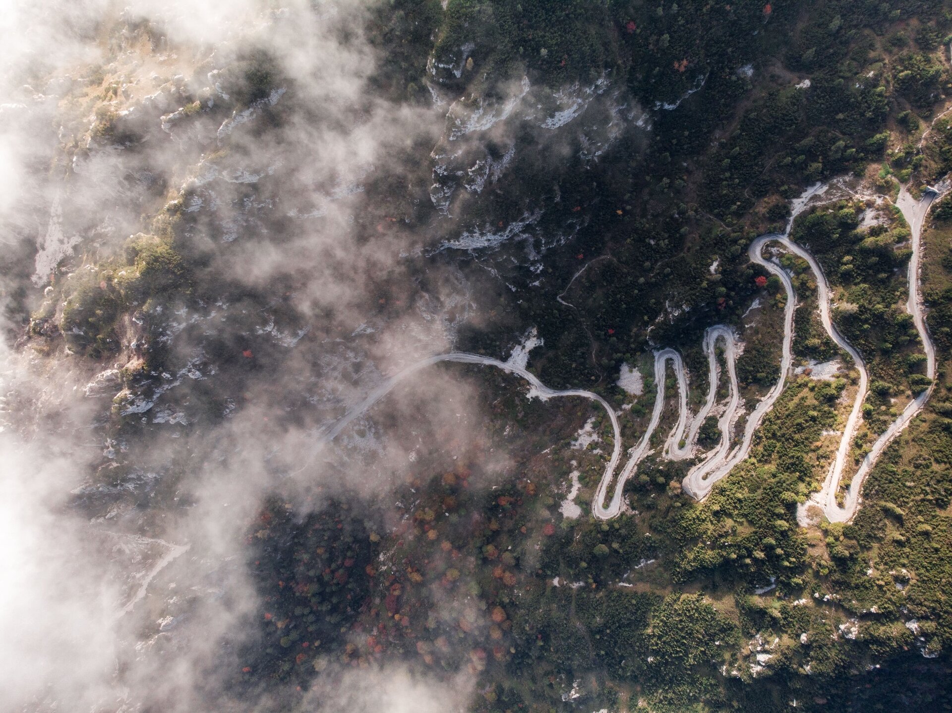Am Pass geht es weiter auf der alten Militärstraße aus dem Ersten Weltkrieg in Richtung Bocca di Val Marza. Nach Durchqueren des Tunnels beginnt die Abfahrt zum Passo dei Gatùm, Passo Prà della Rosa und Passo Nota, mit atemberaubenden Kurven, die das absolute Highlight dieser Tour bilden. Ab dem Passo Nota wird die Strecke weniger steil und führt in leichtem Auf und Ab bis Bocca Fortini. Vom Sattel den Forstweg auf der linken Seite nehmen, um die teilweise sehr steile Abfahrt durch den Wald anzutreten. Ca. 5 km der Abfahrt folgen, ohne die zahlreichen Abzweigungen entlang der Strecke zu beachten. Auf dem letzten Abschnitt bis zum Ledrosee geht der Schotterweg in eine asphaltierte Straße über.
