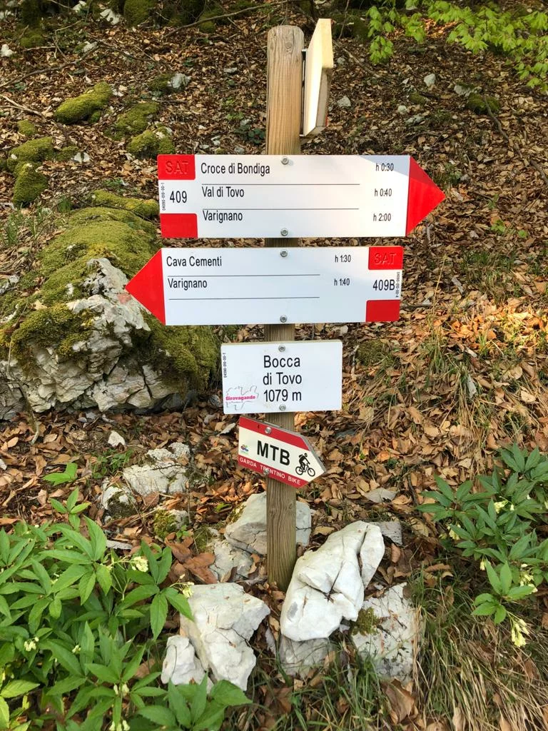 Von der Croce di Bondiga aus gehst du rechts bergauf in Richtung Bocca di Tovo, und nach einem betonierten Abschnitt nimmst du den Weg rechts. Wenn du MALGA TOVO erreichst, geh weiter über die Wiese und nimm den Weg, der in den Wald führt, den du vor dir siehst, in Richtung Bocca. Folge der Forststraße und halte dich rechts, die dich zu einer großen Lichtung im Wald führt. Nimm den Pfad, den du am Ende siehst. Halte dich an den Gabelungen rechts, um zurück auf den Weg nach Olif del Botes zu gelangen; bevor du dort ankommst, nimm die erste Abzweigung rechts und steig auf die Asphaltstraße ab, die zurück nach Varignano und schließlich zum Parkplatz in Vigne führt.