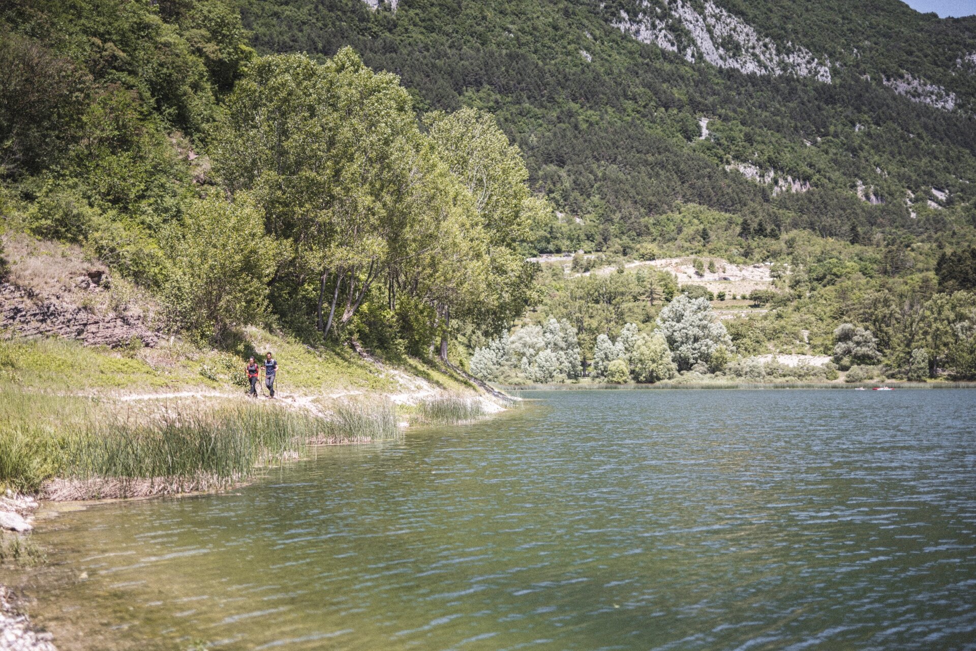 Nach dem Start in Vezzano fährst du hinunter nach Fraveggio und Padergnone bis zum Toblino-See, an dem sich die namensgebende Burg befindet, die auf einem Felsvorsprung im See thront. Dann beginnt ein steiler Anstieg auf einem Nebenasphaltweg (für Verkehr gesperrt) Richtung Ranzo, ein etwas abgelegenes, aber gerade deshalb sehr reizvolles Dorf. Eine spektakuläre Straße, die in den Fels gehauen wurde, führt dich zurück ins Tal, von wo aus du dann nach Nordosten durch die Dörfer Lon, Ciago und Covelo bis Monte Terlago fährst, wobei Straße, Mulattiera und einfacher Pfad mehrmals wechseln. Die Strecke wird kurz vor dem malerischen Lago Lamar und vor dem Dorf Terlago etwas anspruchsvoller. Nach dem Lago Terlago folgst du einem Radweg, der dich zurück zum Ausgangspunkt in Vezzano führt.