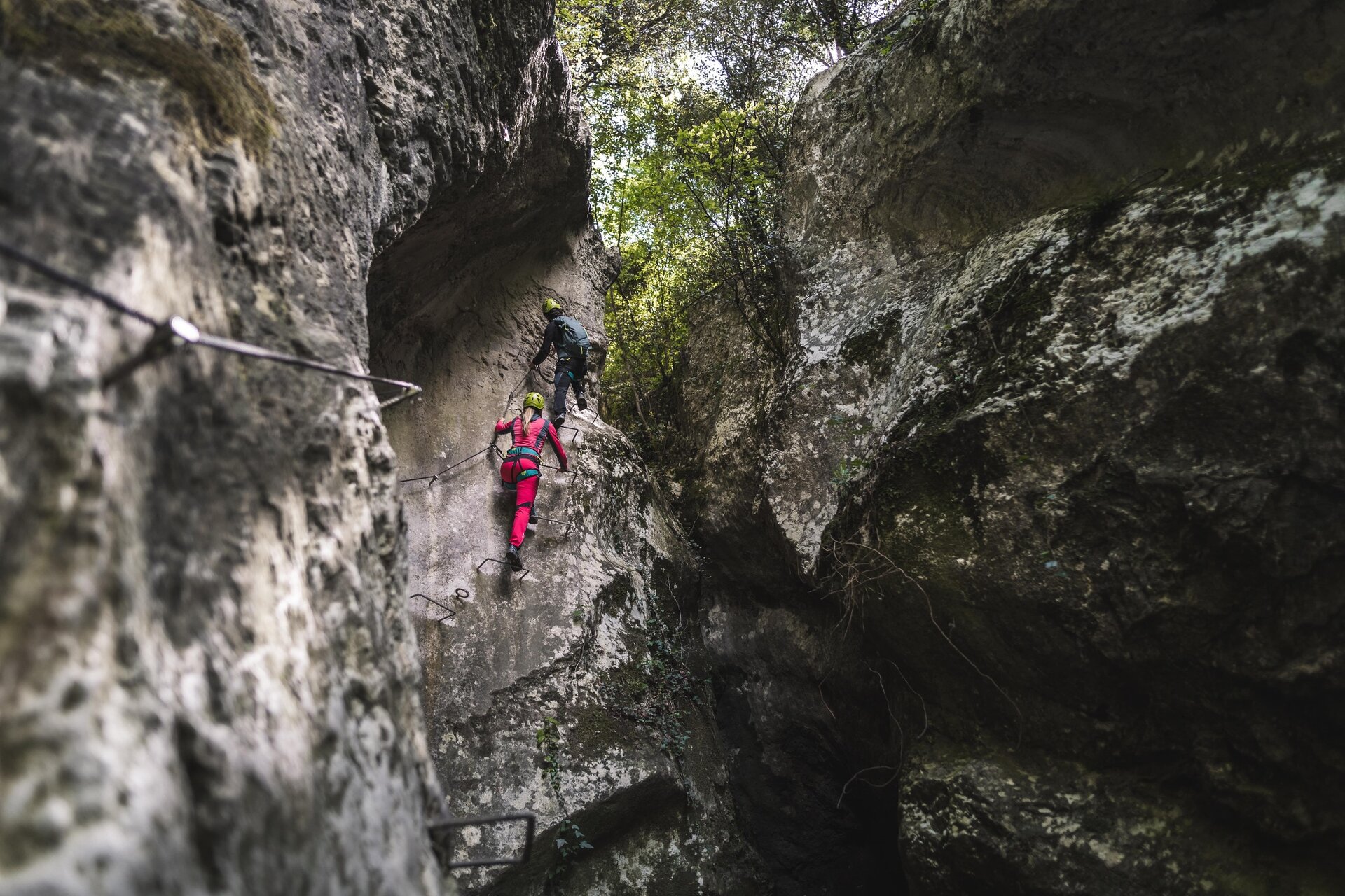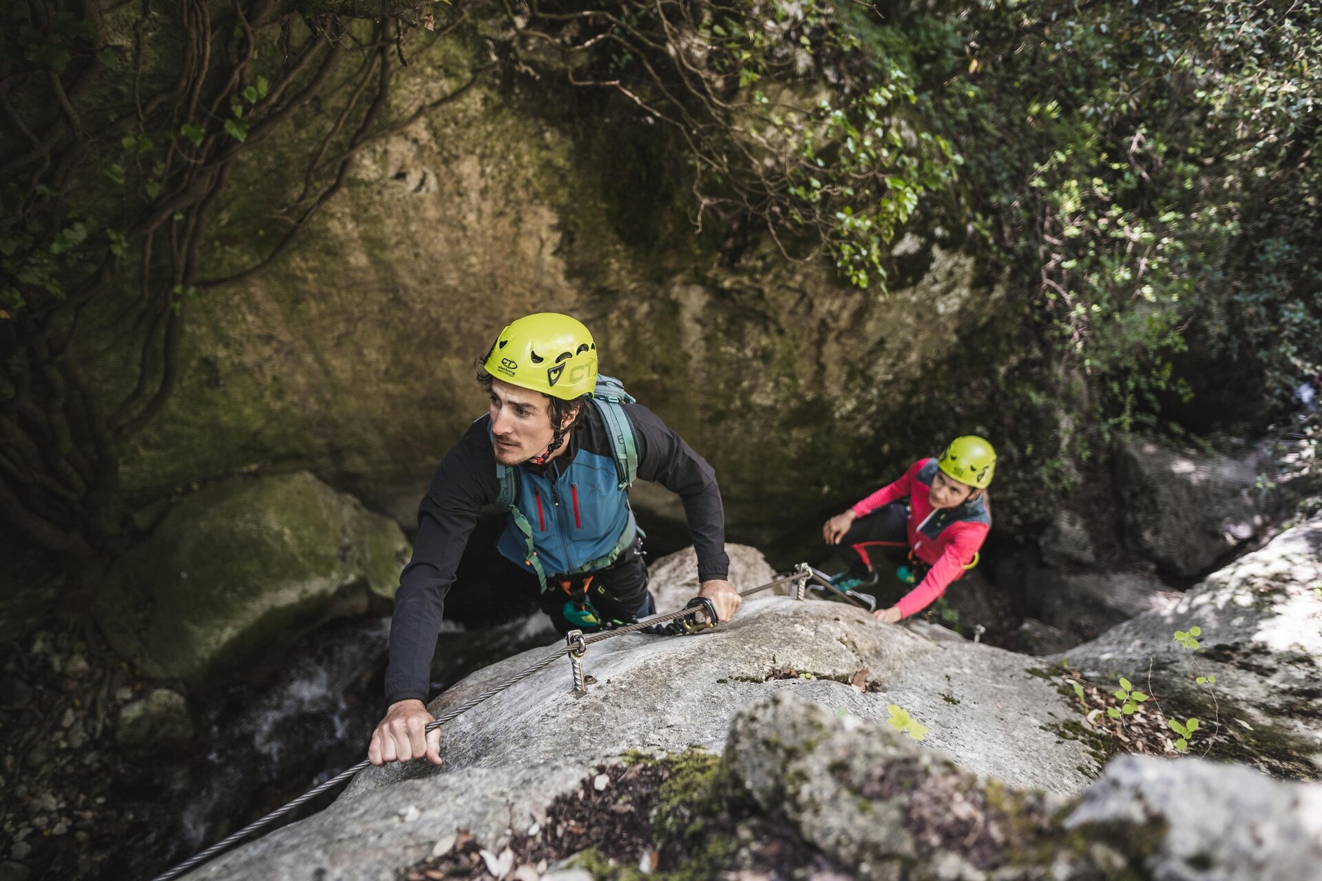 Eine aufregende Via Ferrata, die sich durch eine atemberaubende Schlucht windet. Der Weg folgt dem Bachbett und bietet ein einzigartiges Erlebnis, während die steileren Abschnitte mit Leitern bewältigt werden, die fest in den Fels eingelassen sind.