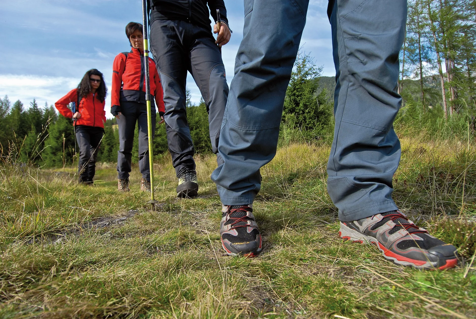 Zum Weg und zur Jahreszeit passendes Schuhwerk. Viele der Wege sind uneben und holprig. Die Schuhe sollten daher über den Knöchel reichen, um guten Halt zu bieten und vor Zerrungen und Verstauchungen zu schützen. Gerade Grashänge, Felsplatten oder steile Wege können ohne passendes Schuhwerk bei Nässe schnell zu gefährlichen Rutschflächen werden.