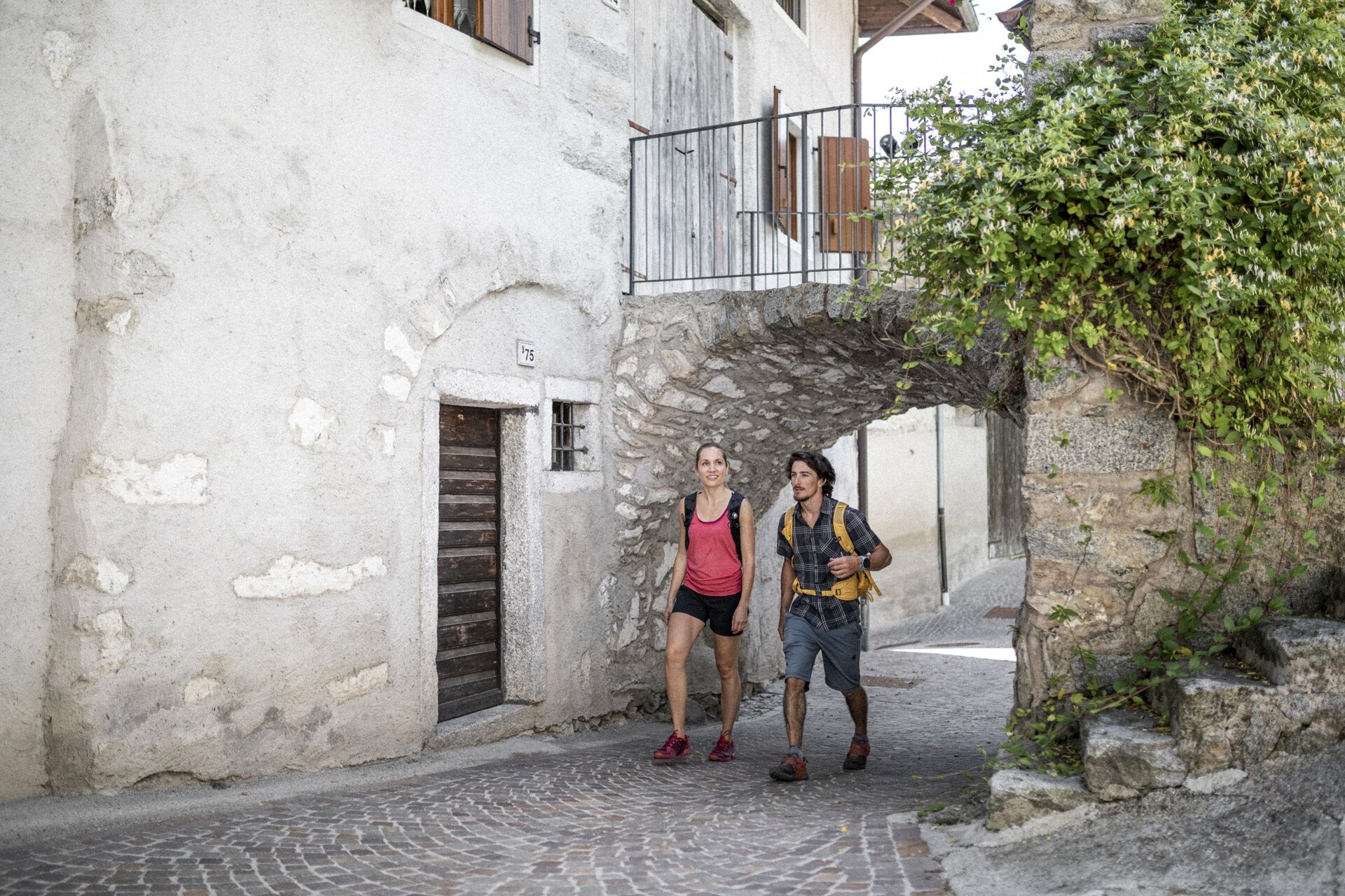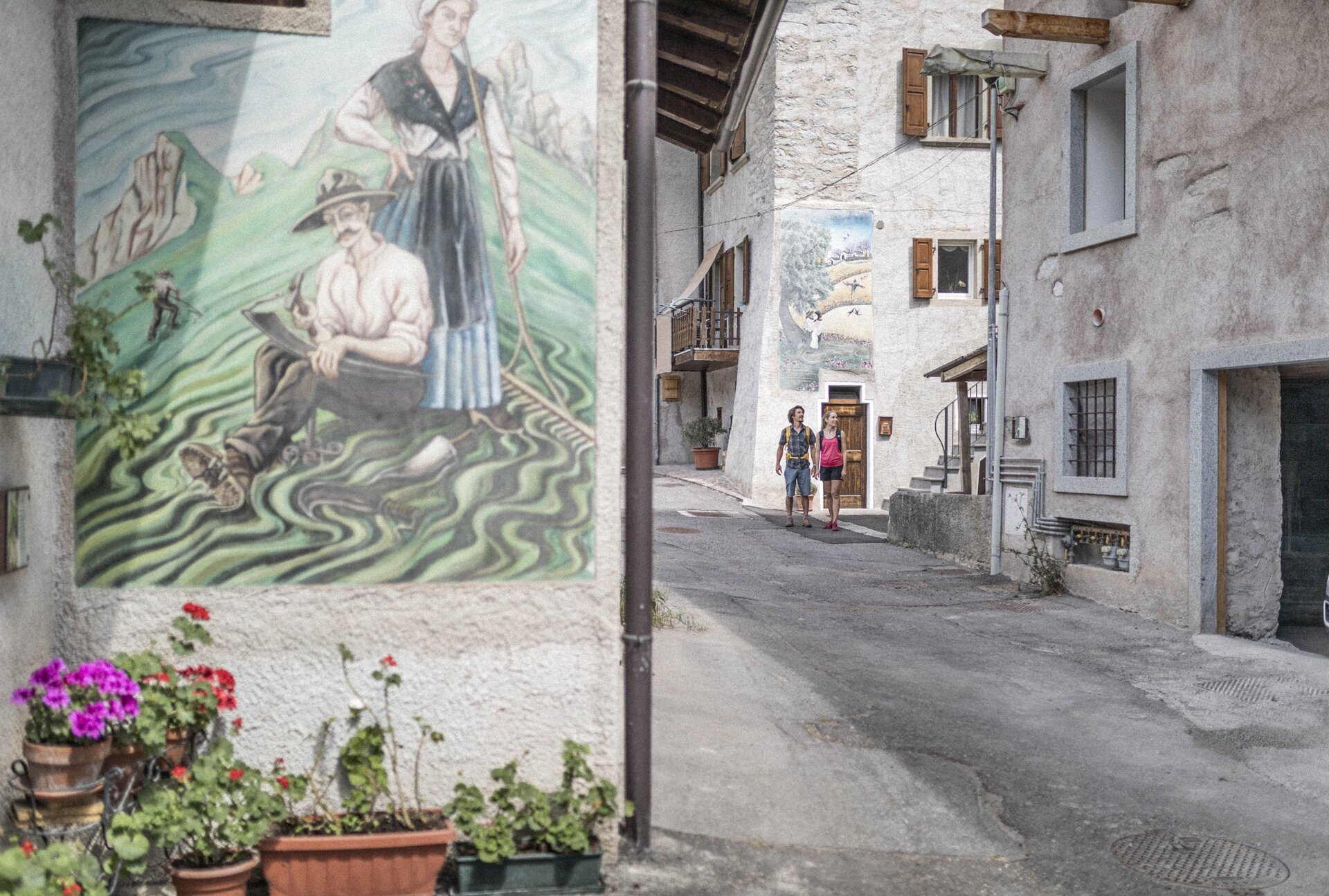 Ein Spaziergang durch die Mauern des kleinen Dorfes Rango, das mit seinen alten, aneinandergereihten Häusern, verbunden durch Arkaden, Torbögen und Innenhöfe, eine noch lebendige Vergangenheit entdecken lässt; Balbido, das mit Wandmalereien bemalte Dorf, die Geschichten, Legenden und Traditionen darstellen, bis zu den grünen Wiesen der unberührten Natur des Passo Durone.