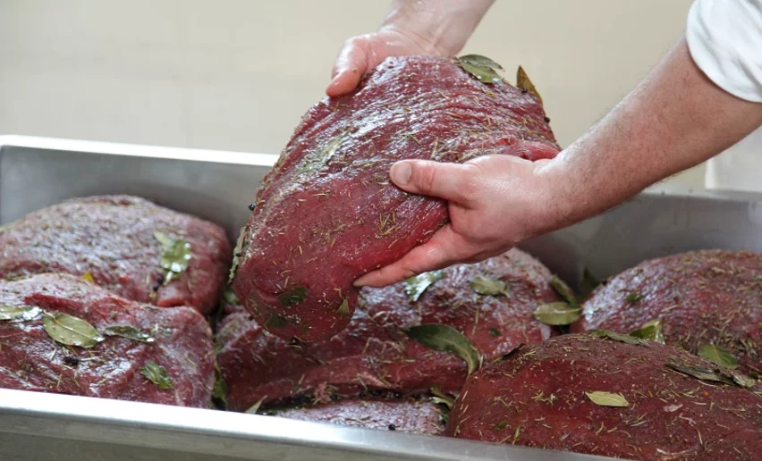Für die Herstellung von Carne Salada wird nur äußerst hochwertiges und mageres Rindfleisch verwendet, welches am Stück mit Salz, Lorbeer, Schwarzem Pfeffer, Wacholderbeeren, zerdrückten Knoblauchzehen und Rosmarin gewürzt wird – dabei gibt es übrigens auch zahlreiche Geheimrezepturen, die als Familiengeheimnis gehütet werden. Einst wurde das Fleisch in Behältern aus Holz oder Stein aufbewahrt, heute lagert es hingegen in Edelstahlbehältern – erst nach 25 Tagen ist es dann genussbereit.