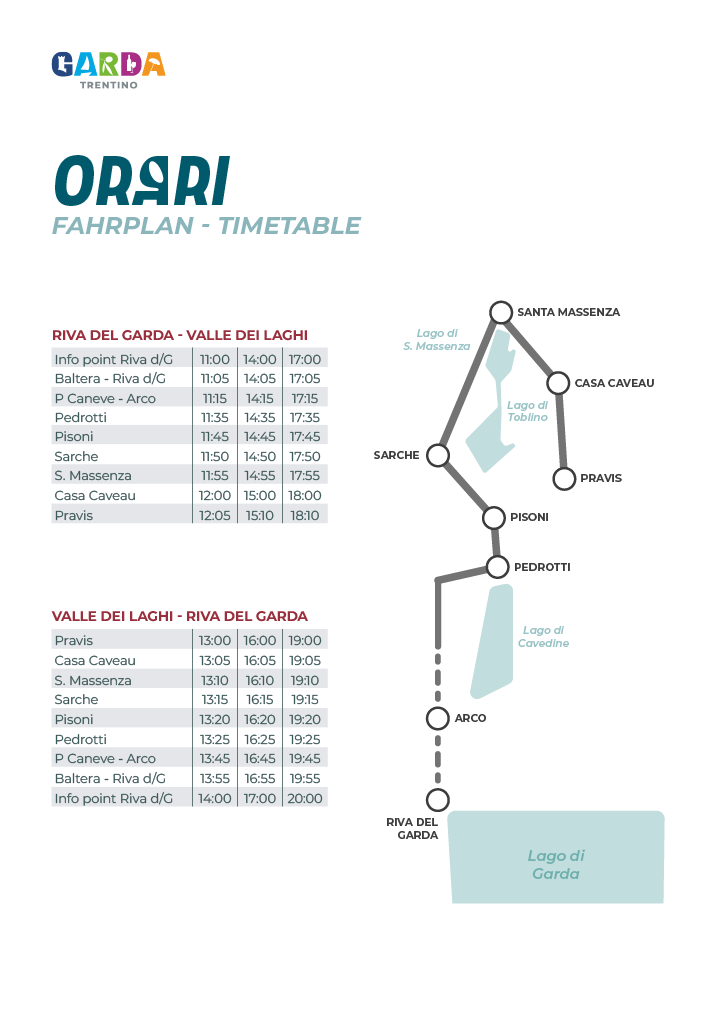 Wine&Go führt dich zu den Weingütern im Valle dei Laghi: ein „Hop‑on Hop‑off“ Shuttle fährt zwischen Riva del Garda und Arco und verbindet die Weingüter der Region. Du kannst überall auf‑ und absteigen, entscheiden, welche Winzereien du besuchen möchtest und wann.