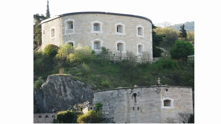 BAUJAHR 1860/1861. Der Auftrag zum Bau erfolgt am 21. Dezember 1859 durch das Kriegsministerium. Die Arbeiten beginnen im Juni 1860 und enden am 5. Januar 1861. 1861 und 1863 wird die Burg baulich abgenommen. Die damaligen Bauarbeiten führte die Firma Tomasini aus.
