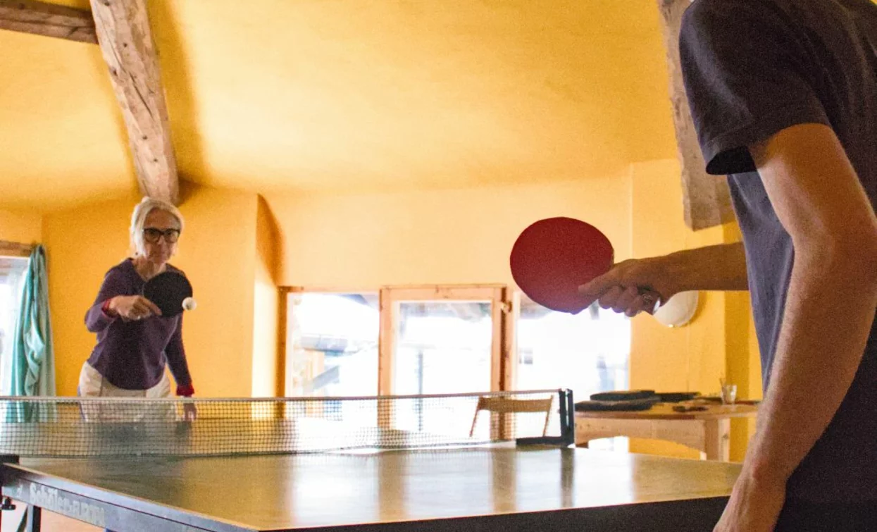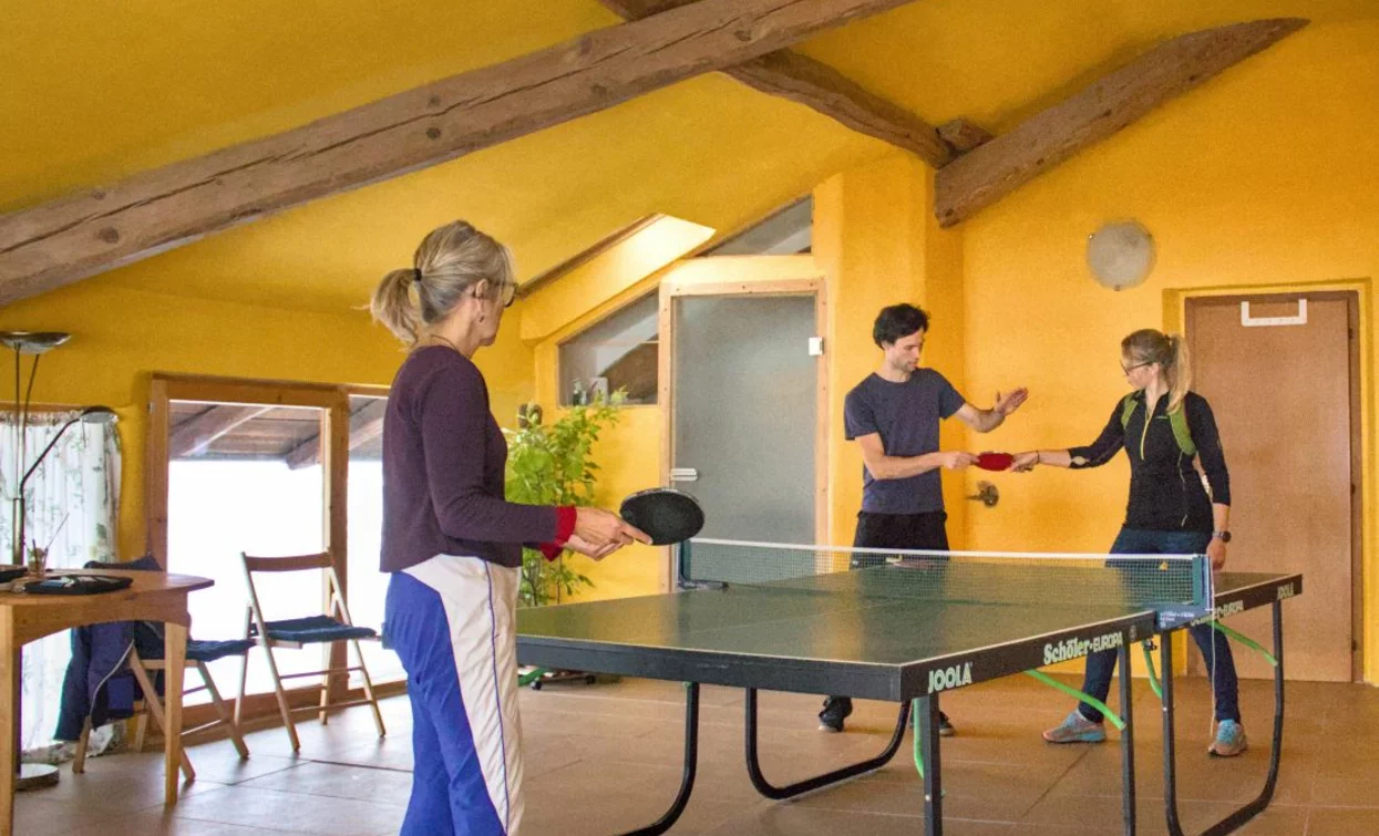 Tischtennis spielen im idyllischen Bergdorf Lundo.