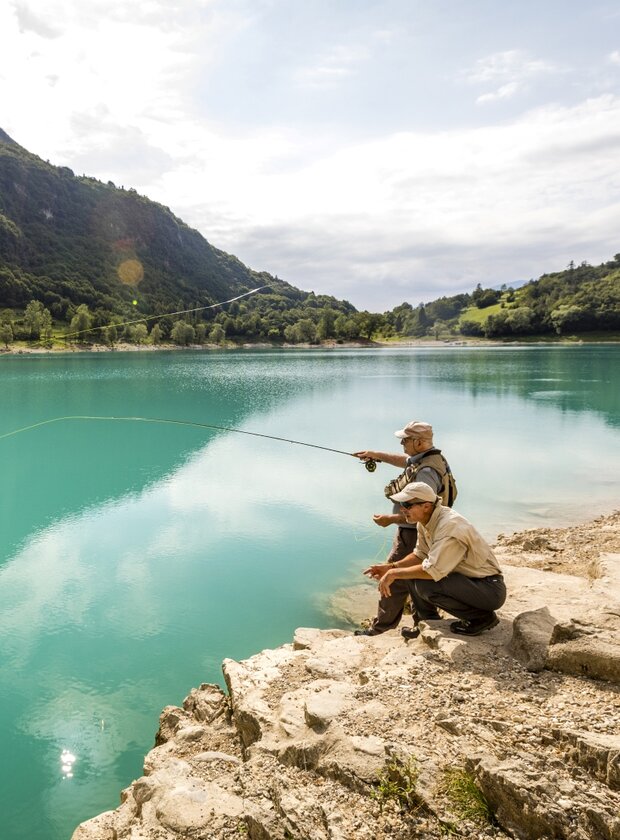 Im Garda Trentino sind nicht nur die Angelgebiete zahlreich – insgesamt sind es 50 –, sondern auch die anwendbaren Techniken. Entlang der ungestümen Bäche, in den kristallklaren Wassern der Bergseen und umgeben von den Farben wilder Natur, lassen sich verschiedene Angeltechniken einsetzen. Und wenn du auf der Suche nach einem extravaganten Erlebnis bist: Hier kannst du auch Salmoniden, Hechte, Flussbarsche, Karpfen und Schleien fischen! Ob du wohl erfolgreich sein wirst?