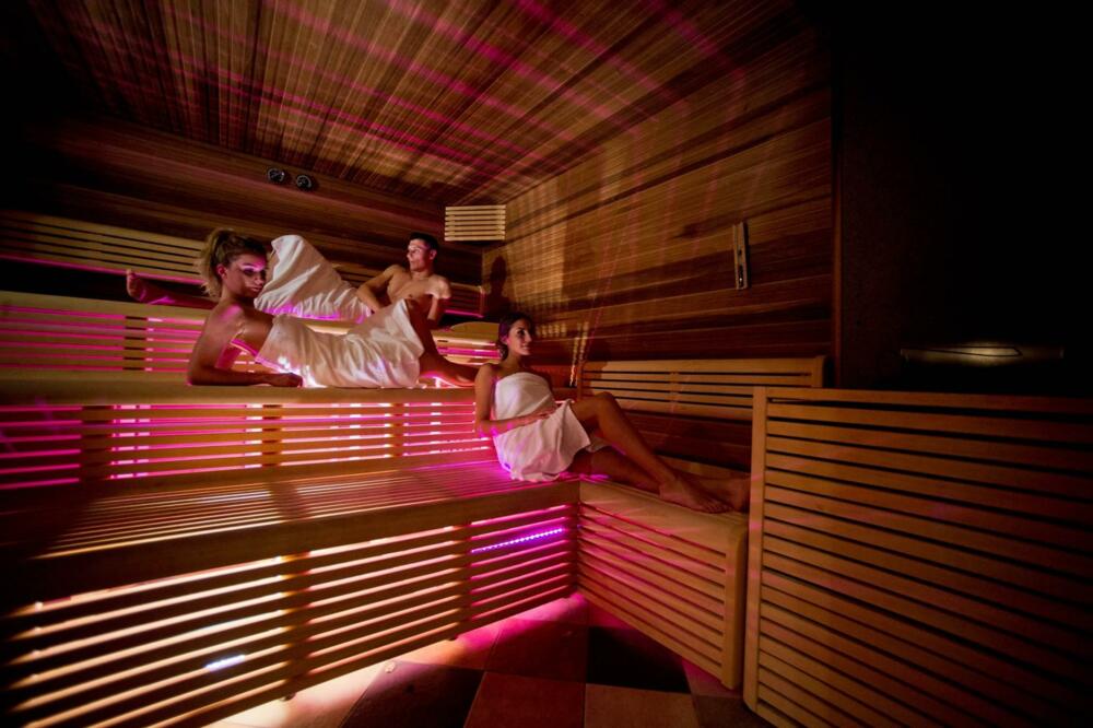 Es verfügt über einen großen bewachten Parkplatz, einen Wellnessbereich mit finnischer Sauna und Bio-Sauna sowie einen Fitnessraum mit modernen Technogym-Geräten.Abstellraum für Fahrräder und Sportgeräte, Werkstatt, Fahrradwaschanlage, Wäscheservice für Sportbekleidung.Hauseigene Bar, Honesty-Bar zum Selbstbedienen am Pool und die charakteristische "Cantina", in der zweimal wöchentlich kostenlose Olivenöl- und Weinverkostungen angeboten werden.