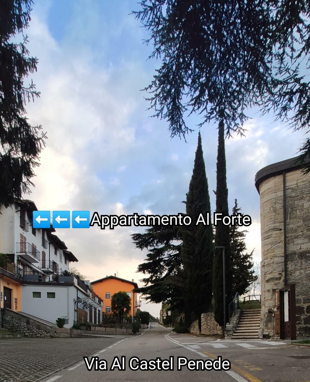 - Wenn Sie von Rovereto kommen, nehmen Sie die dritte Ausfahrt in die Stadt, Sie haben die Pizzeria La Villa auf der rechten Seite, biegen Sie wieder rechts ab und nehmen Sie die Via Al Castel Penede. Nach etwa 200 Metern, Sie erreichen das Forte Alto. Das 'Al Forte Apartment' befindet sich genau gegenüber.
