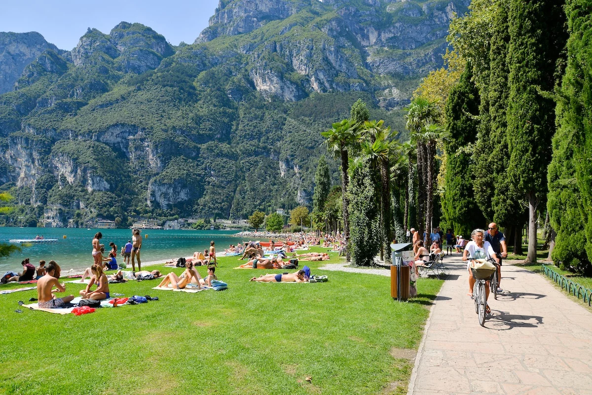 The stretch of the cycle path which links Torbole and Riva del Garda is without doubt one of the most popular with visitors and residents for the marvellous views it affords over Lake Garda. It is particularly busy in the summer season so watch out for the people walking along the cycle path or crossing it to get to the beach.