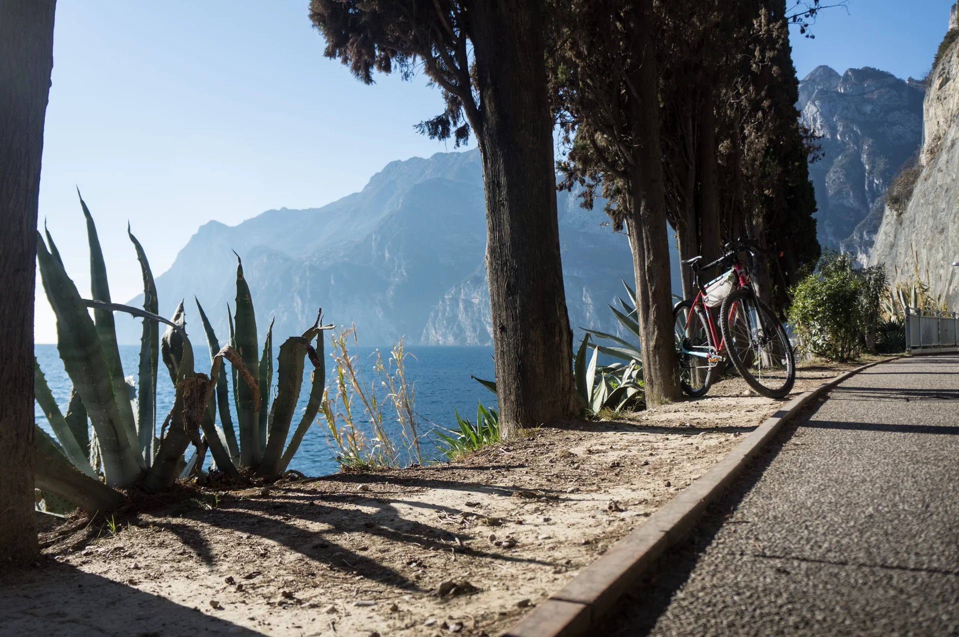 From the tourist information office in Riva del Garda head towards the lake: for a short distance you will need to push your bike along the lake shore. Cross the bridge over the Albola stream and turn right: this is the start of the protected cycle path reserved for bikes only.