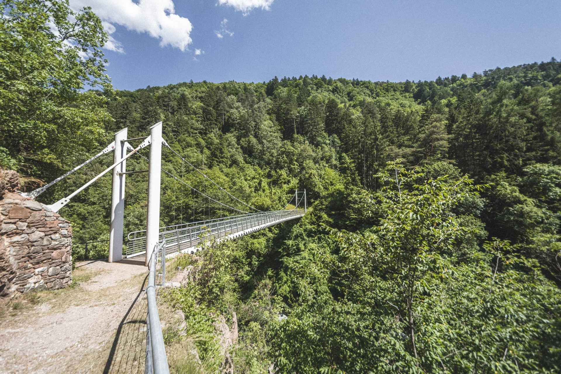 The gorge of Limarò/Sarca can be nowadays traversed on a new steel bridge, approximately 100 meters away from the Roman one. An uphill stretch along a quite steep trail towards Villa Banale is followed by a downhill stretch reaching Ponte Arche via a pleasant, narrow road that crosses the forest and offers beatiful glimpses on Comano valley.