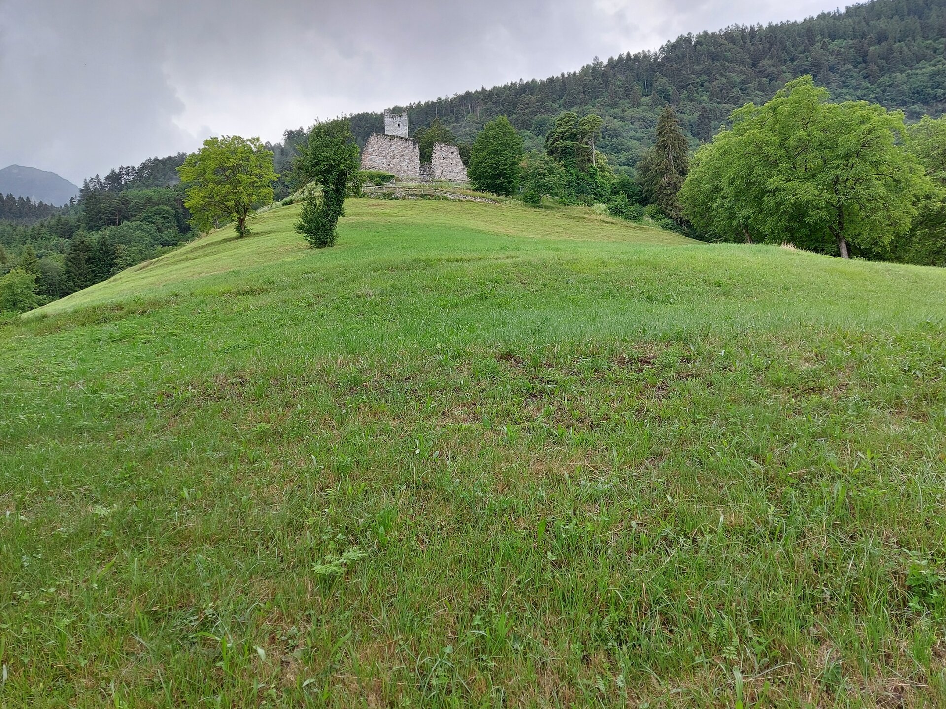 The ruins of Castel Restor, located on a panoramic hilltop, stand out over Duvredo.