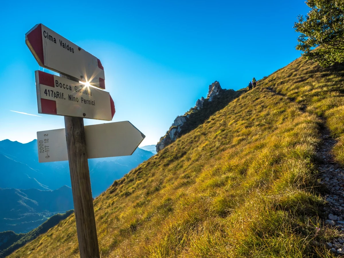 This path starts with a very demanding section, quickly gaining altitude as you face the steep slopes of Monte Rocchetta on path SAT 418. The elevation change is about 1550 m, but it is worth it because you can enjoy fabulous views on both sides once you reach the ridge.