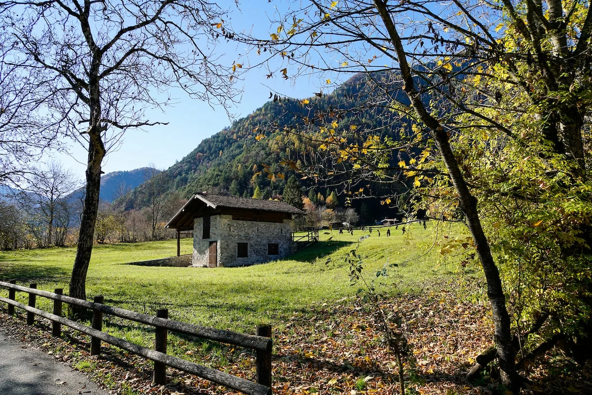 Exit the A22 motorway at Rovereto Sud – Lago di Garda – Follow the SS240 della Val di Ledro to Pieve di Ledro. Drive past Lenzumo. At the sign 'Piste sci da fondo' turn right.