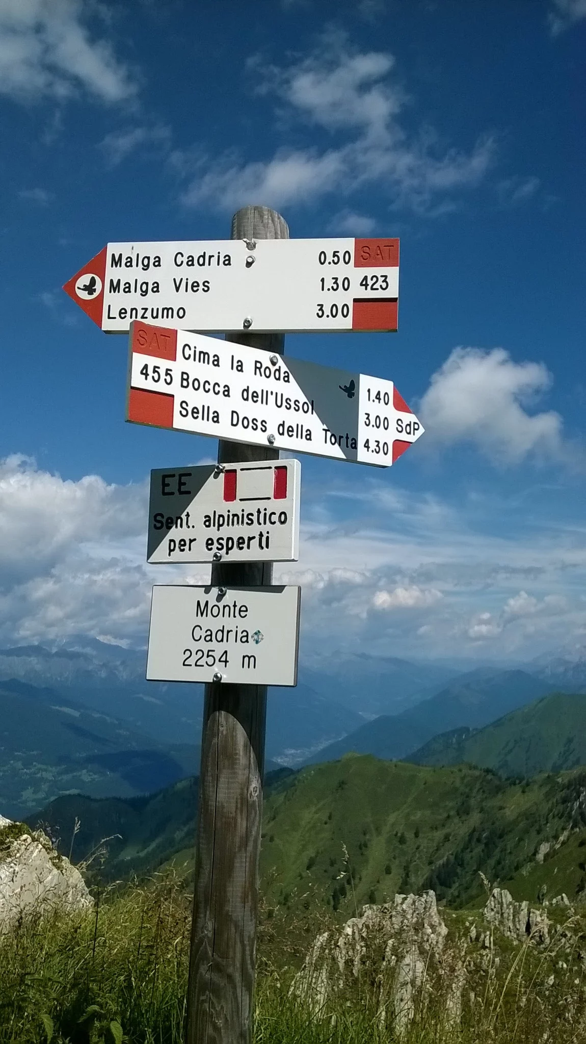 After the ascent to Bocca Trat the route keeps above 1900 m right to the Bocca dell’Ussol. The path then descends towards Malga Guì and the locality Al Faggio. Corno di Pichea, Tofino, Doss de la Torta e Gavardina: these are the mountains along the route.