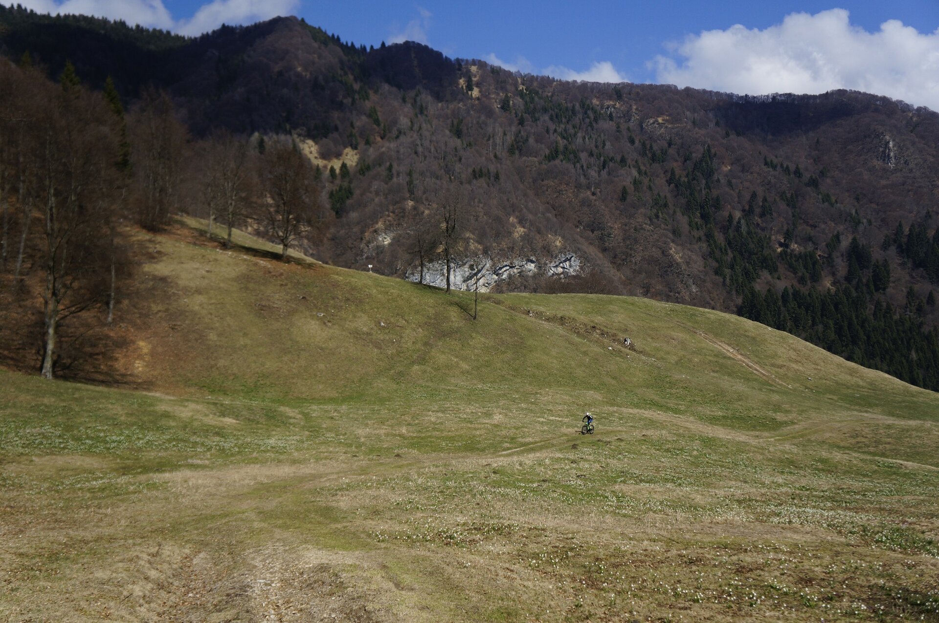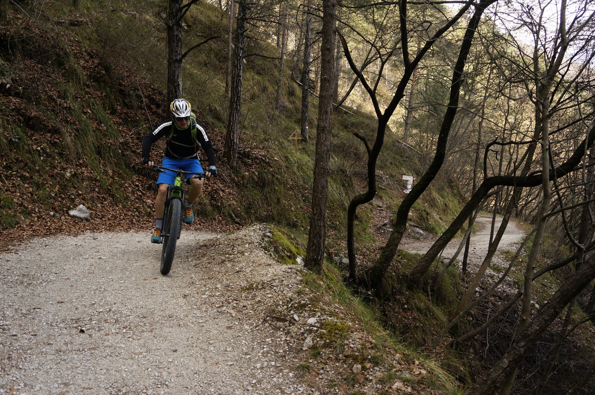 With or without a break, it’s now time to cross the torrent and prepare for the descent, which has in store a wonderful surprise: the first trail designed from scratch and entirely built by the Garda Rangers to create a tailor-made experience for bikers. The trail is suitable for all experience levels thanks to a regular surface and a width of 1,20 m, but there are lots of curves to ensure a fun experience as well! Near Parisi, the trail meets the concrete road.
