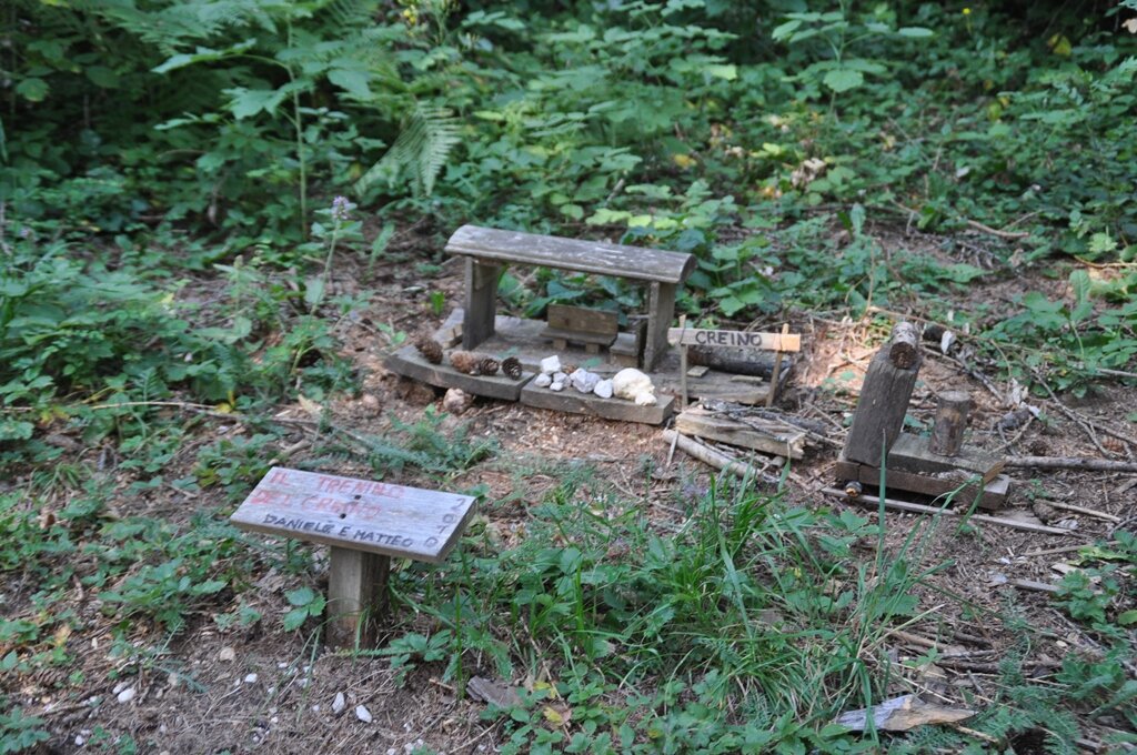 From Santa Barbara, above Val di Gresta, take the dirt road just in front of the fountain (sign with hiking map) for a flat route through vast cultivations. After about 500 meters, a left junction will take you into the woods, while on the sides of the road you will find numerous natural installations of “environmental art” made by the valley’s elementary school students.