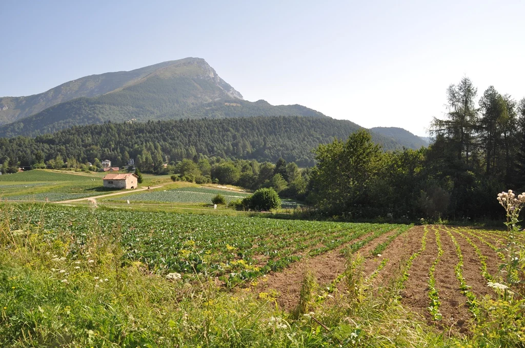 From Santa Barbara, above Val di Gresta, take the gravel road right in front of the fountain (billboard with hiking map), for a level route through vast cultivated fields. After circa 500mt. an intersection to the left will lead you into woods, while along the sides of the road you will encounter the numerous natural stagings of "environmental art" creations of the valley's elementary school students.