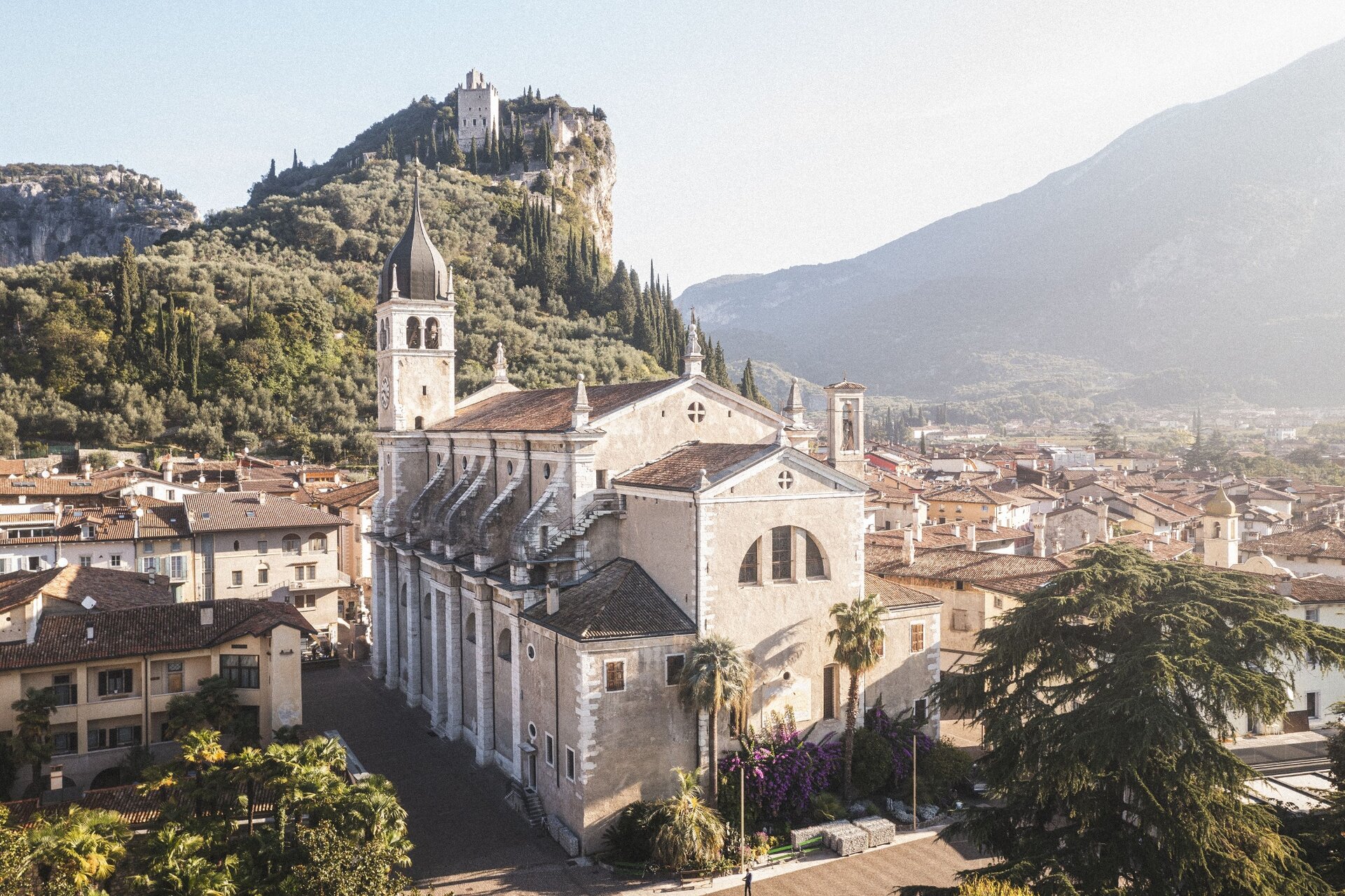 The route starts in Arco, or more precisely at the cycle path near the Caneve car park. Following the initial directions, head toward the town centre, where it is fairly easy to find the public gardens in the town centre. At the far left of the park, take Viale delle Magnolie and then turn right into Via Porta Scaria, which runs uphill skirting the historic centre and the arboretum. At the town gate in Stranfora, turn left and at the following fork keep left.