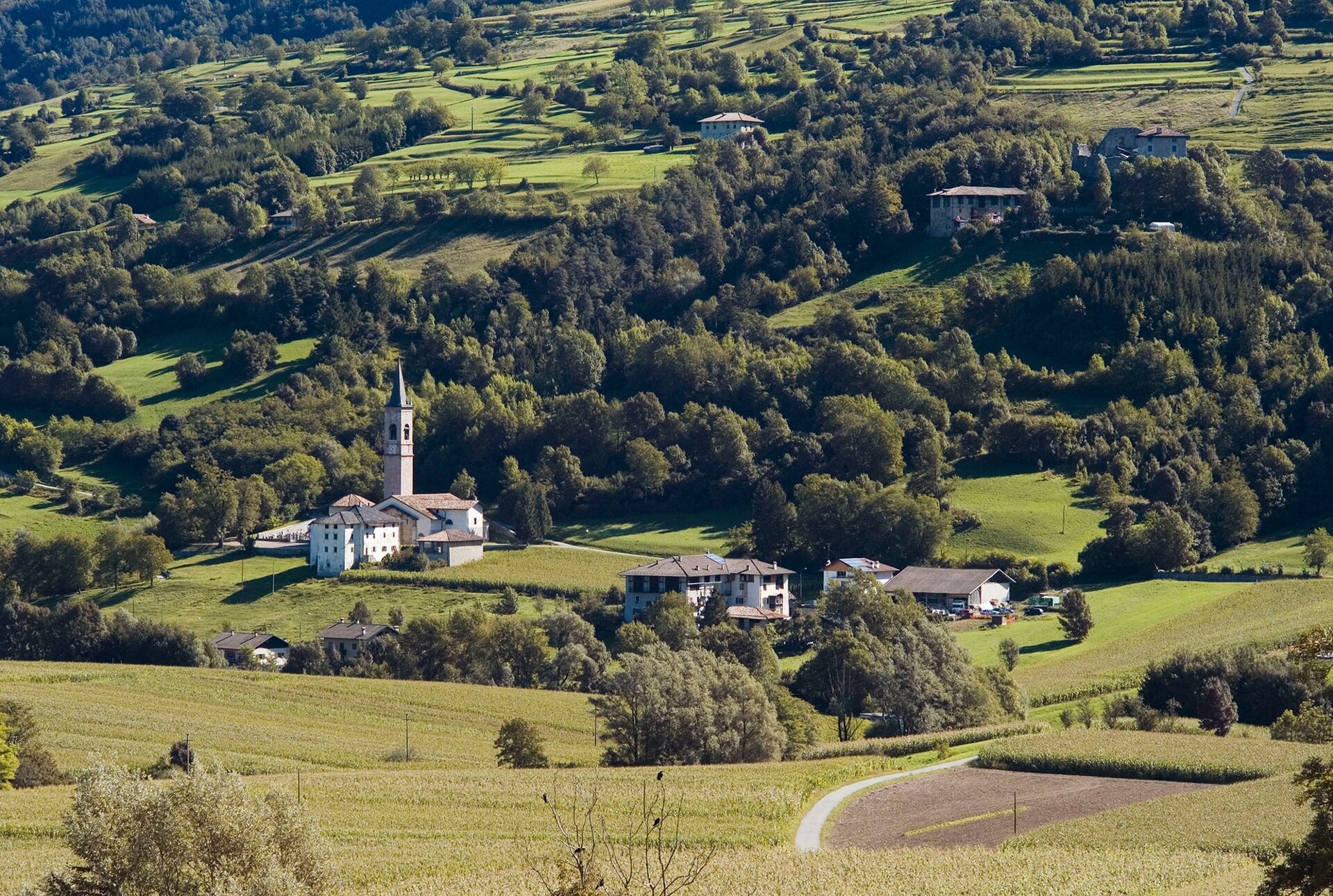Enter “Sentiero della Patata” in Vigo Lomaso, just below the church, near the San Rocco’s shrine conveniently placed in front of a carpark. Follow the lane leading to Vigo Lomaso’s church and after walking around the building, continue on the road for Poia. After about 1 km, just before the village entrance, follow the “potato path” to the left towards Campo Lomaso. When you reach Campo Lomaso, walk a few hundred metres along the pavement until you come to the town hall. Next, cross the road heading for the Franciscan Convent. Continuing along a country lane, passing in front of the convent, walk across the Piana del Lomaso. At the end of the plain, turn left to reach Dasindo where you will find the native home of poet Giovanni Prati and the church dedicated to S. Maria Assunta. As you walk through the village you will come across COPAG, the town market that collects and sells locally grown potatoes and other produce. After 700 metres, you will reach the starting point of this walk.