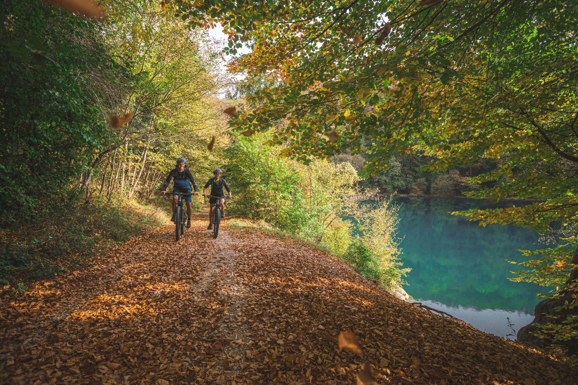 The tour starts on Via Degasperi in Terlago, where there is some convenient free parking in front of the primary school. From here, you will proceed along the cycle path on Via Palù, passing Trilacum Sports Centre on your left. Follow the "del Palloncino" bend alongside the SS-45bis (Gardesana) road. From this point, you will take the dirt road in the direction of Covelo – Cadènis, bypassing Monte Mezzana. Once you come to the end of the dirt road, you will arrive at the first few houses in the town of Covelo. Keep heading in this direction and start the uphill climb across the SP-18dir and into the village via Cadènis, Villa Bassa and finally onto Via Ariòl in the direction of Monte Terlago. Continue along the road to Ariòl until you reach Maso Ariòl, where you will take the first uphill road on your left towards the woods following the SAT 627 trail. Continue to follow the dirt road that runs alongside the last few houses and into the countryside, until you reach Maso Parisoi, after which you will continue your climb through the Monte Terlago countryside. At the end of the road, you will find yourself in a car park at the top of the village of Monte Terlago, where you will take the road towards the Prada meadows, following the SAT 627 trail signs. Continue along the same path until you reach the crossroads with SAT 682, where you will continue on until you reach the highest point on the path, at the top of the Prada meadows (940 m.a.s.l.). From here, you will begin a steep and technically challenging descent in the direction of Mez Pian. Less experienced riders are advised to dismount in a couple of places to avoid the tight hairpin bends. Once you reach the bottom, you will find yourself on a forest road heading south in the direction of the Lamar lakes along the SAT 681 trail. Once you arrive at Lake Lamar (718 m.a.s.l.), cycle back uphill briefly, making sure to follow the SAT 627 trail towards Lake Terlago or the Giro del lago di lamar 1A. At the top of this steep climb, continue to follow the 1A until you have cycled through (with numerous ups/downs) the entire Faeda Forest before arriving at the Vallene campsite. At the campsite, turn left onto SAT 615 towards Terlago, which will take you downhill to the first few houses in the village. There are some steep stretches during this descent and less experienced riders are advised to dismount. Once you reach the village of Terlago, continue right on Via Crosara, cross the covered walkway, and take Via Defant towards the church once you get to Piazza Torchio. Turn left here on to Via Roma, cross the narrow road, and turn right on to Via Degasperi before the Cassa Rurale. You will find yourself back at the departure point in the primary school car park.