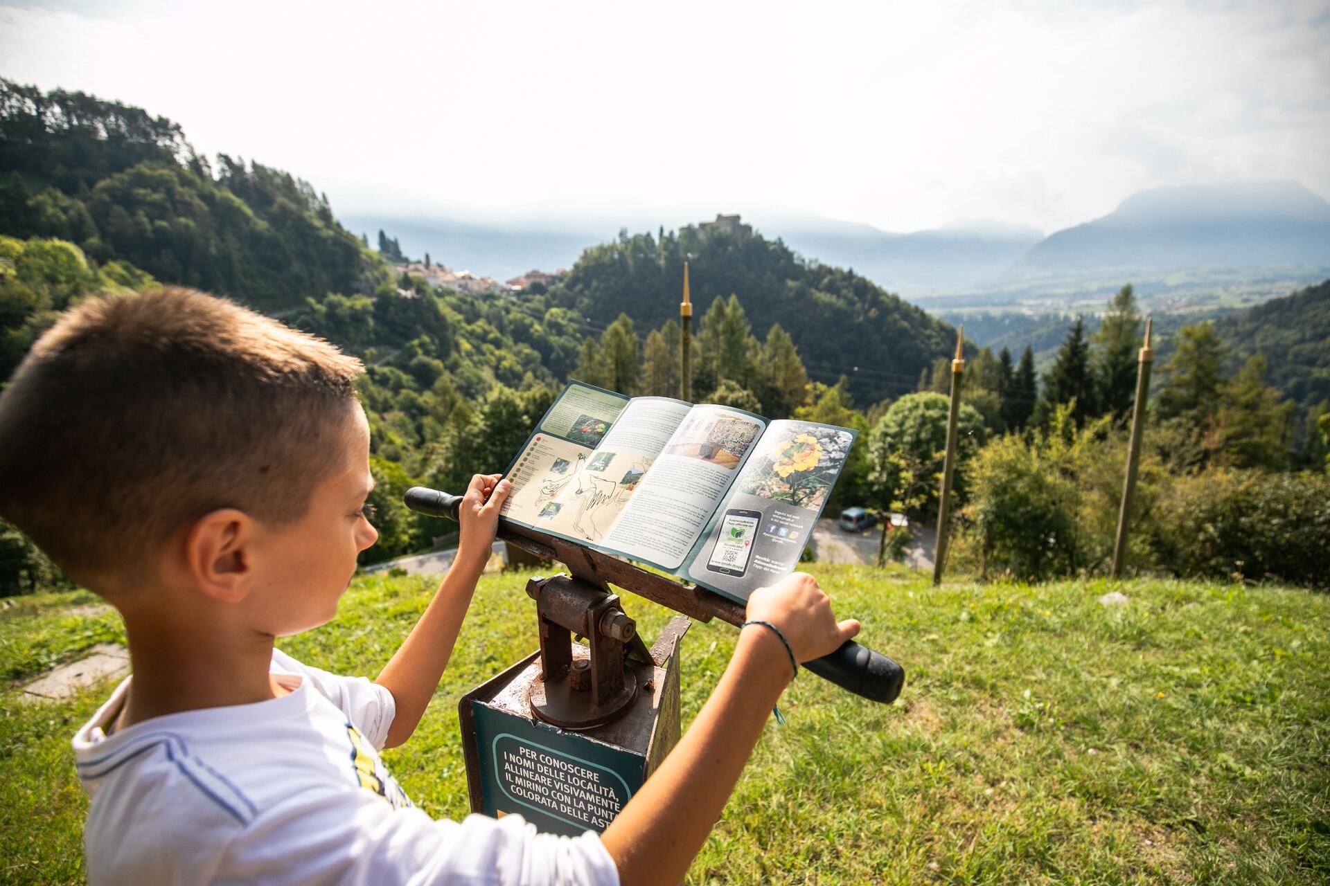 Take the path behind the House of Flora, continuing towards the “botanical garden”, equipped with valuable educational “stations”, made up of panels and fun games. From here, following the path, you reach the Bosco Arte Stenico, which can be visited by following the marked circular route, passing among works of art made solely with natural materials.