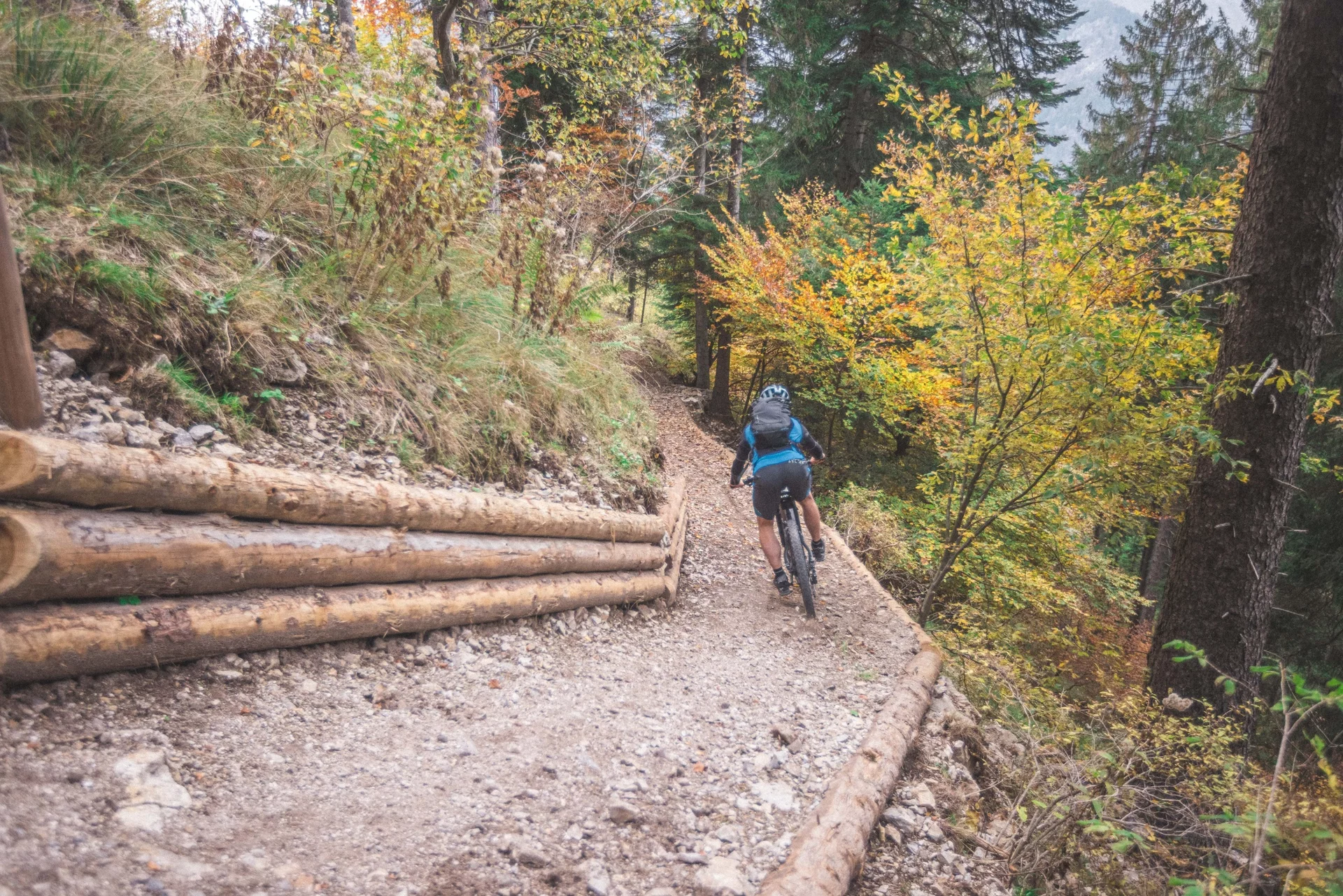The entrance to the variant is along the road from Lenzumo to Malga Trat at a hairpin bend with a bar that blocks motor vehicles from entering (about 4 km uphill from Lenzumo and 1 km downhill from Malga Trat, shortly after the beginning of the tarmac road).