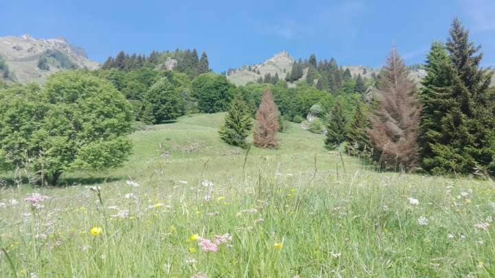 From the woods surrounding Rifugio Al Faggio one reaches the pastures, huts and malghe of Concei, walking halfway up the mountain side along the mountain crown encircling the valley: Monte Cadria, Monte Roda and Monte Gavardina.