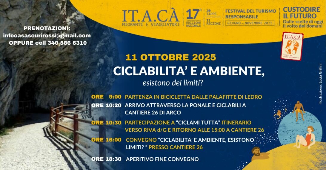 On October 11, a day will be dedicated to cycling and reflection on cycling infrastructure and environmental issues. Participants will travel together along roads and trails, joyfully combining physical activity with moments of shared reflection — all set against the stunning backdrop of Ledro–Arco–Riva del Garda.