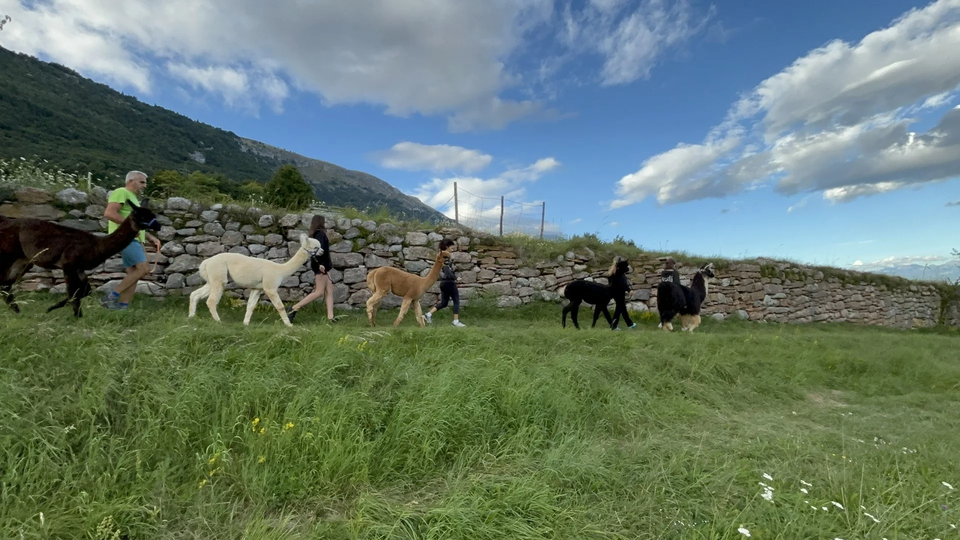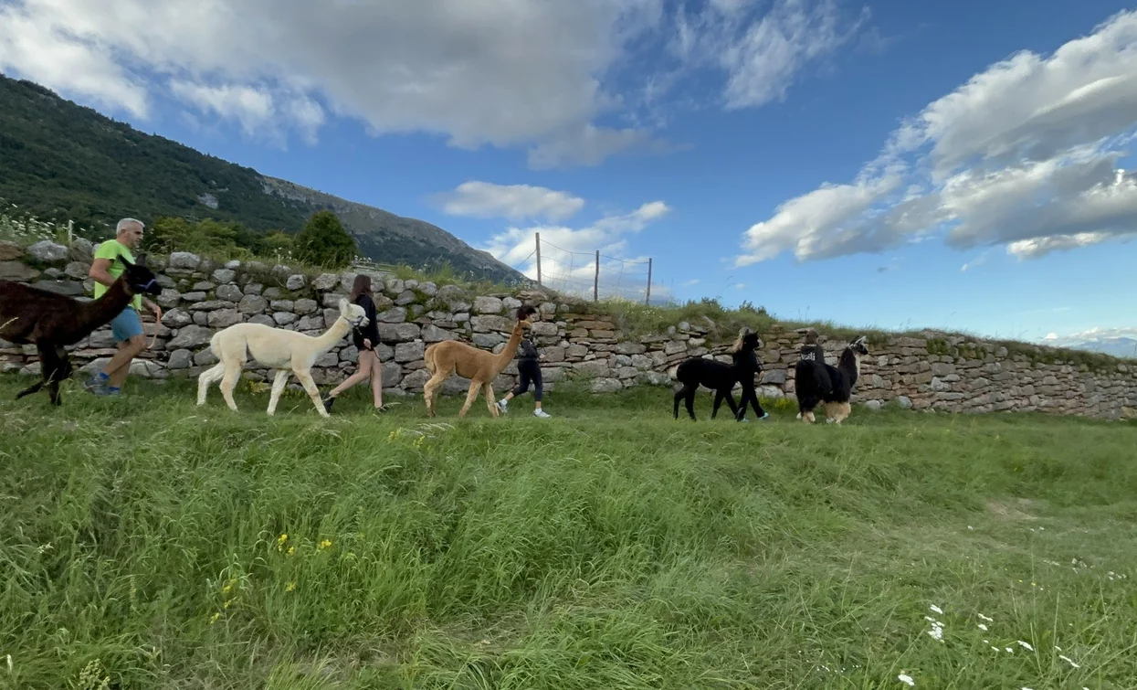 We are a family of five, united by passion and curiosity, who decided to put all their effort into creating a welcoming place for llamas and alpacas, and for anyone who wants to learn more about these fascinating creatures. We come from the splendid Valle dei Laghi, in Trentino, a land rich in natural beauty and traditions that inspired us to make this dream come true. Our business was born with the intention of offering a unique experience, both for those who are already passionate about these animals, and for those who want to approach them for the first time. Imagine a moment of total relaxation, immersed in the tranquility of nature. Our llamas and alpacas, curious but serene, approach you gently, with their kind eyes and soft fur, transmitting an immediate calm. Our walks are the ideal opportunity to relax, immerse yourself in the greenery and rediscover the serenity that only nature can offer. Suitable for all ages, they are perfect for families, couples, groups of friends and for anyone who wants to spend a day outdoors in the company of these extraordinary animals.