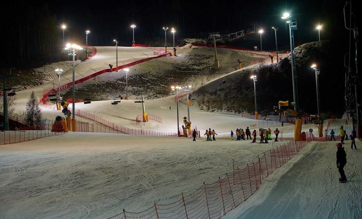 The night lightning of the ski center allows its visitors to enjoy a suggestive ride under the stars.