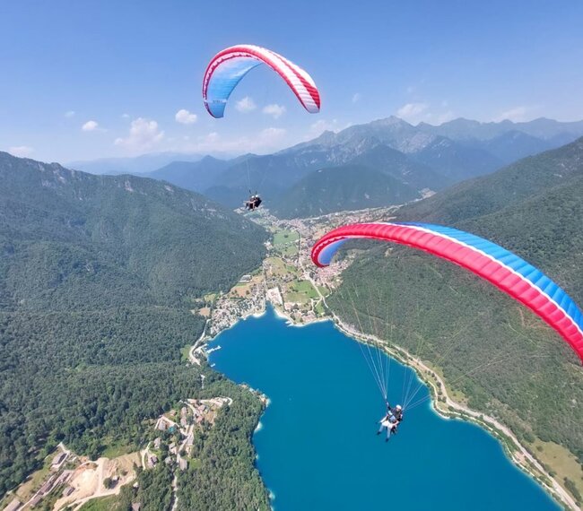 In Garda Trentino, you can experience the thrill of a tandem paragliding flight—always in total safety and guided by expert instructors. Gentle take-offs, breathtaking views over lake and mountains, smooth landings… and the instant desire to go up again. All you need is a bit of courage and the wish to see the world from a whole new perspective.