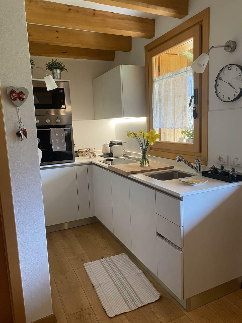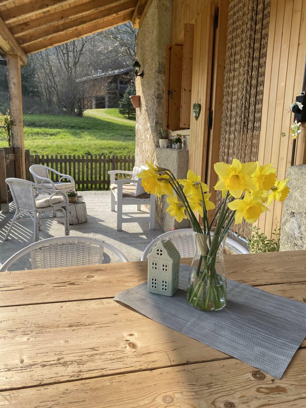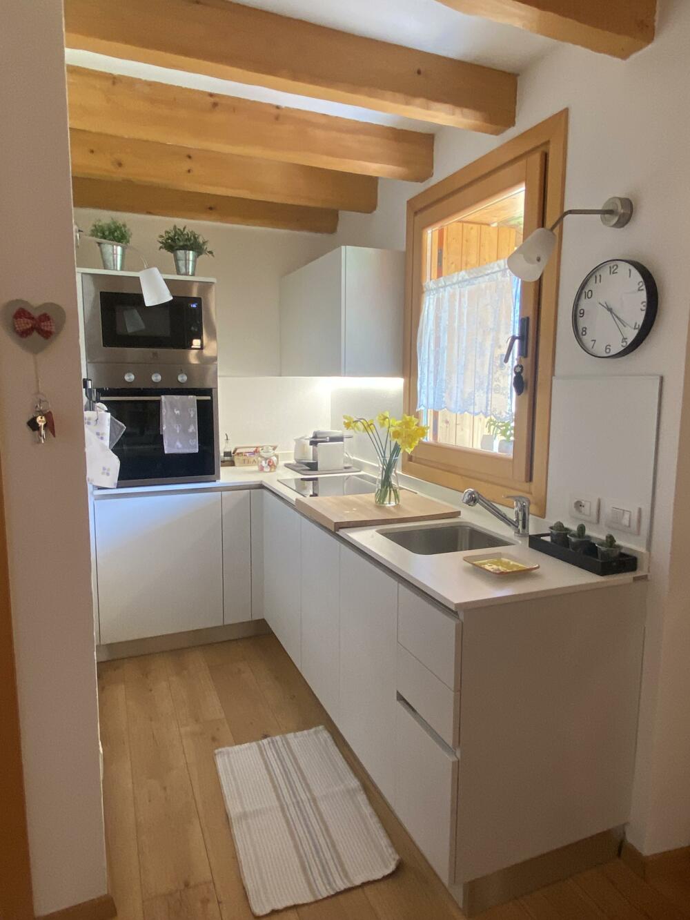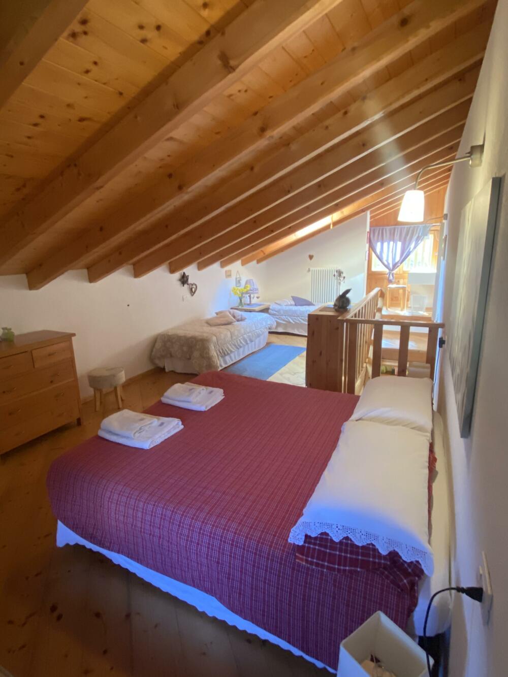 Cozy cottage surrounded by greenery. Excellent location. Located 700 m from Bezzecca. Near the cycle path to Lake Ledro. Fenced porch with green space for your dog’s comfort and safety. Large sunny lawn. On the first floor: equipped kitchen (refrigerator, dishwasher, microwave, and oven), living area (TV), bathroom. Upper floor: open space used as a sleeping area with a small office corner (wifi). Heating for winter stays. Service room for bicycle storage and washing machine. Private parking.