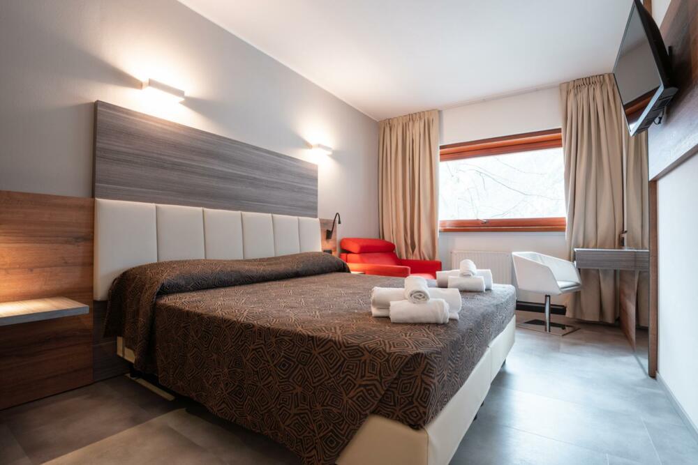 As well as its Restaurant and Pizzeria, the Cuore del Sarca, the Hotel boasts a large garden at the back with an outdoor swimming pool and hot tub area; a garden area with a children’s playground and a small fitness and sauna centre, open on request; a large carpark and a garage for motorbikes.