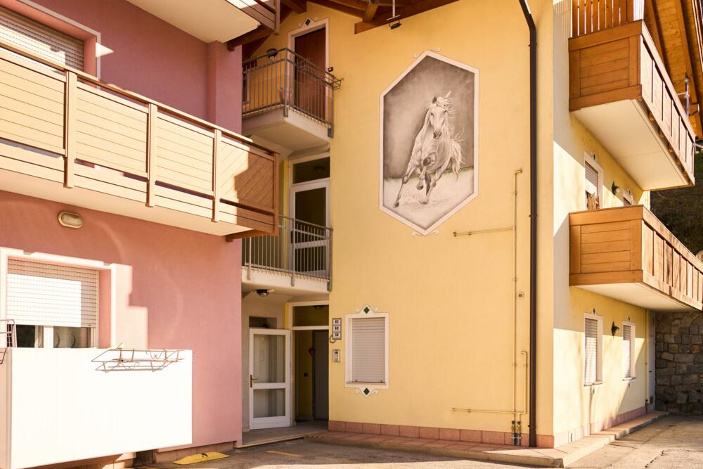 The apartment is located a few meters from the bus station. The house is yellow and has a horse painted on the facade.