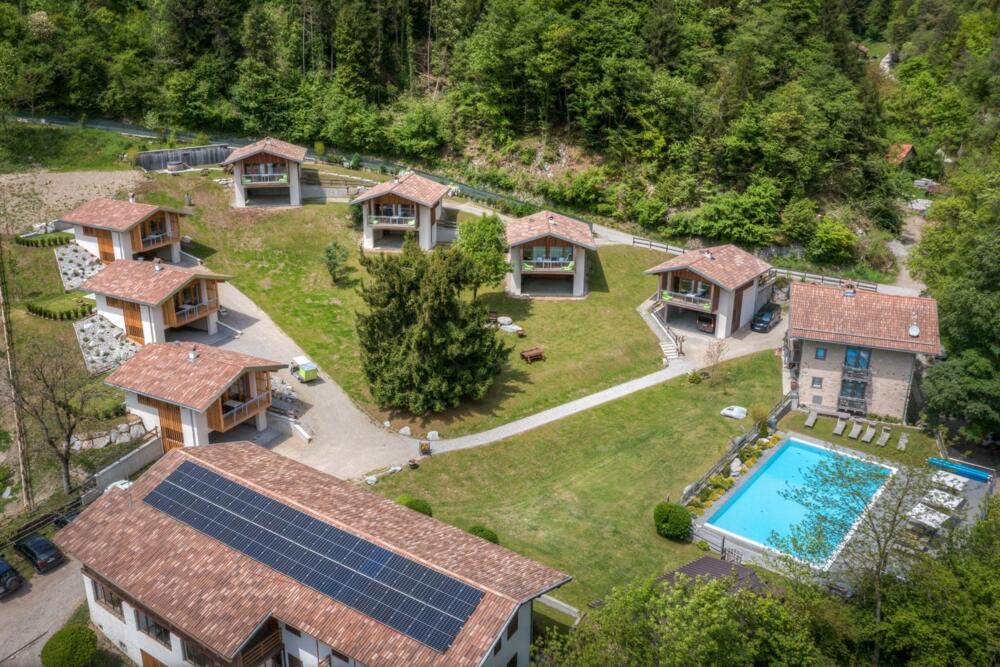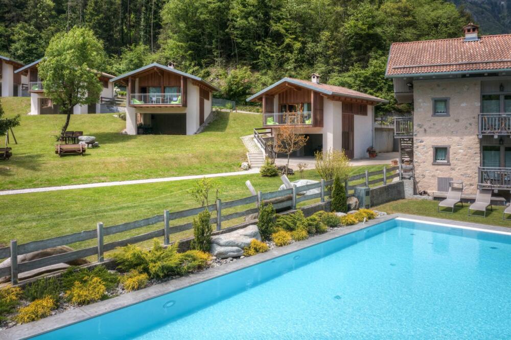 The Villaggio Val Molini is located in a peaceful area in Bezzecca, in the Ledro Valley, just 4 km from Lake Ledro and 20 km from Lake Garda. The village features 7 bungalows and 9 apartments spread across the charming rustic buildings Casa Cadria and Casa Molini, the latter housing a wellness area with a Finnish sauna, relaxation room with a tea corner, and two chromotherapy showers. Access to the wellness area is paid and exclusive for guests.