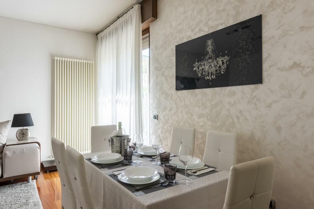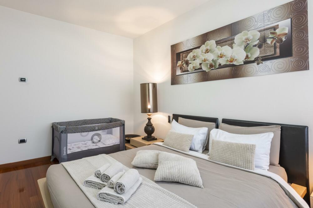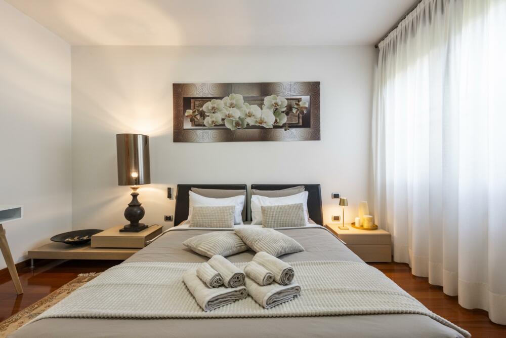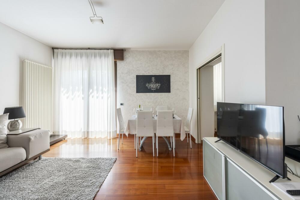 Strategically located just 300 meters from the historic center in a quiet residential area a stone's throw from the lake, the apartment is located on the ground floor surrounded by greenery in a villa with garden and private parking space; ideal for a romantic couple's vacation but also suitable for families and business trips. In the immediate vicinity you can find bars, restaurants, shops and e.bike rental service.