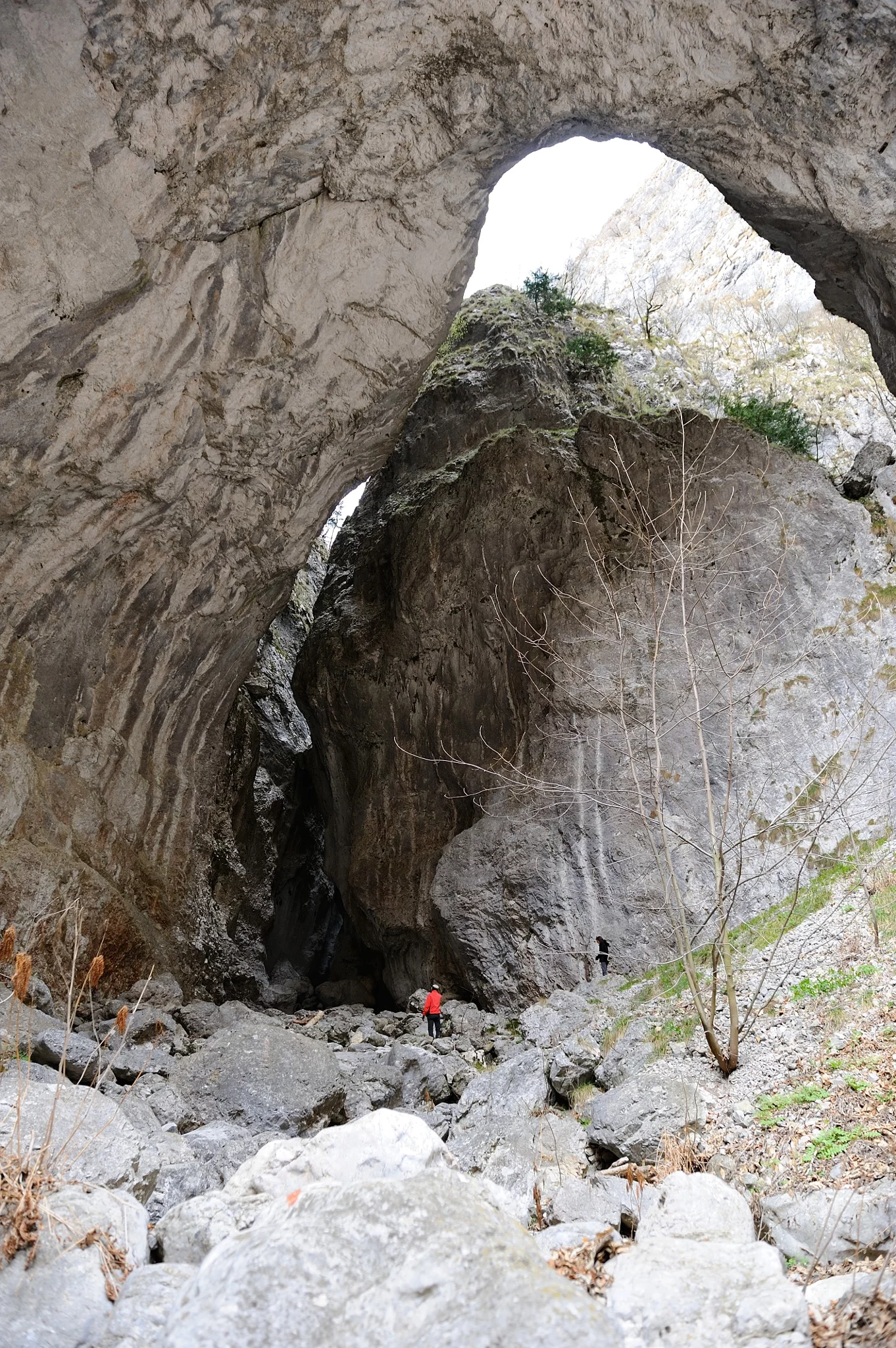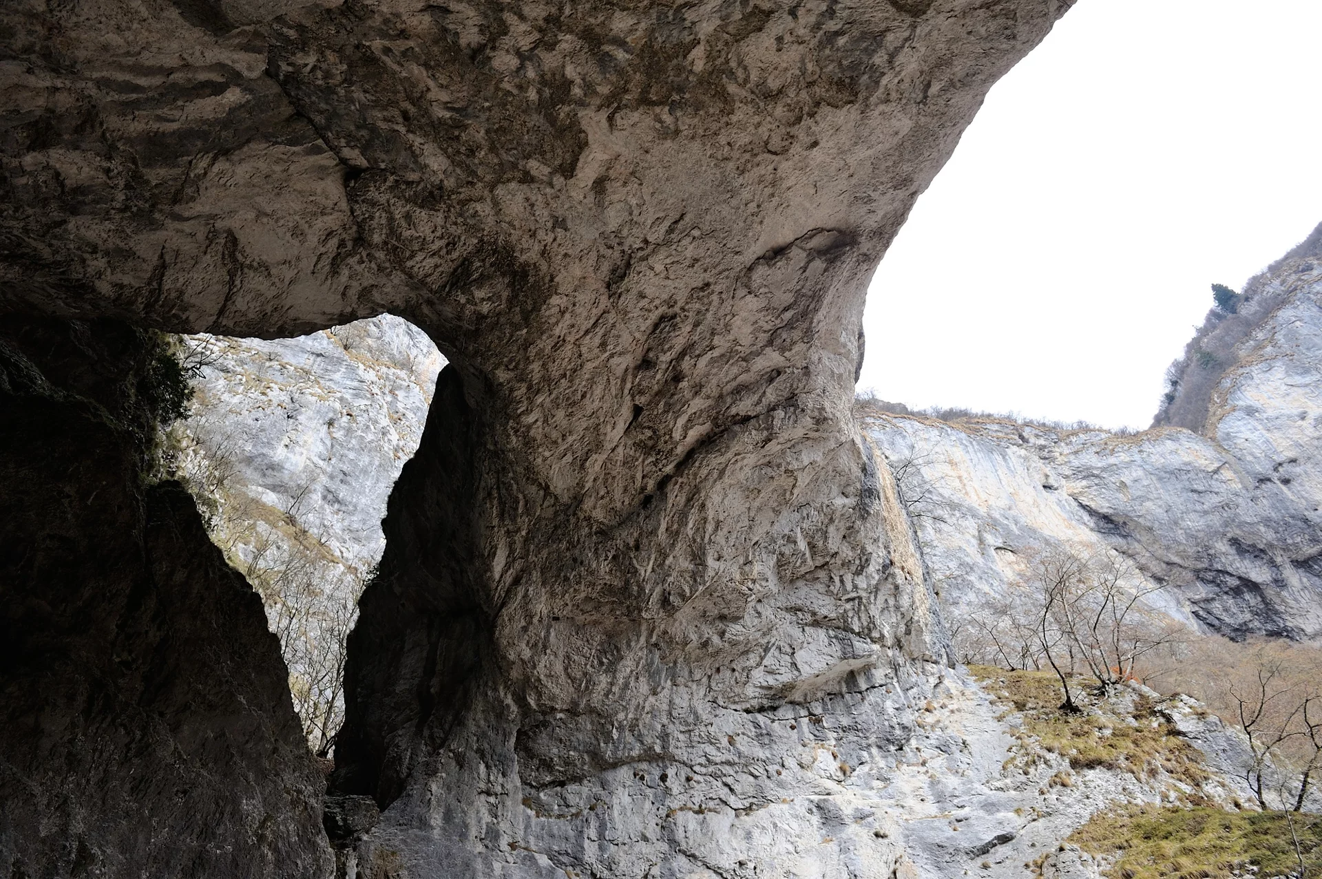 “…presenta all’occhio uno spettacolo stupefacente. Un’ardita arcata congiunge due elevate pareti che si prolungano per una trentina di metri; nel fondo precipita da due cascate un torrentello. La seconda cascata è alta circa 15 metri e sopra di essa uno spiraglio di luce indica che nel soffitto della grotta vi è in quel punto una fessura di due o tre metri. Strani riflessi di luce illuminano l’acqua che balza fa le rocce”. Scritto del geologo e irredentista Cesare Battisti.