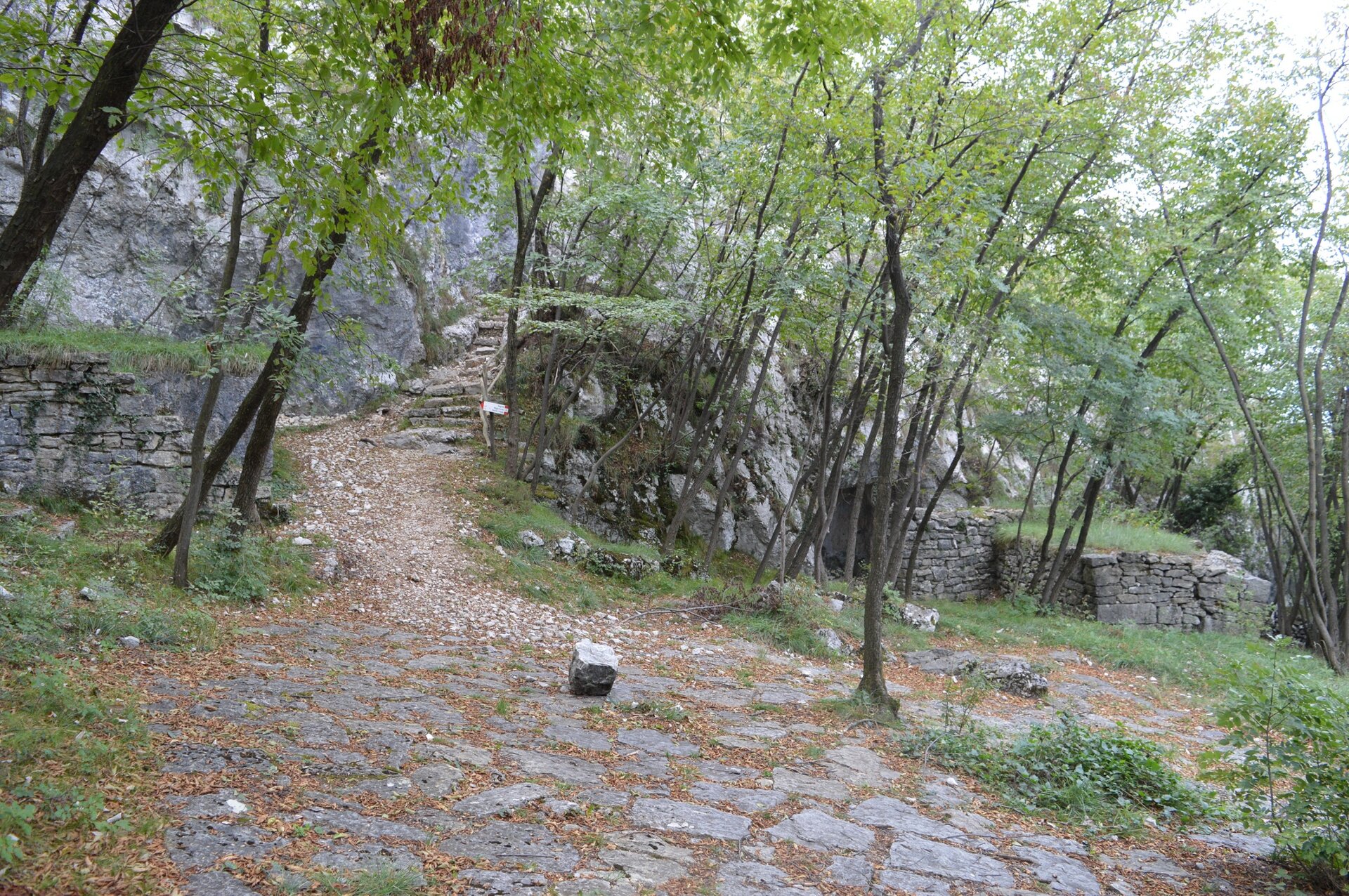 La prima parte segue il Sentiero della Pace, un percorso a lunga distanza che collega i luoghi più importanti delle linee del fronte durante la Grande Guerra in Trentino.