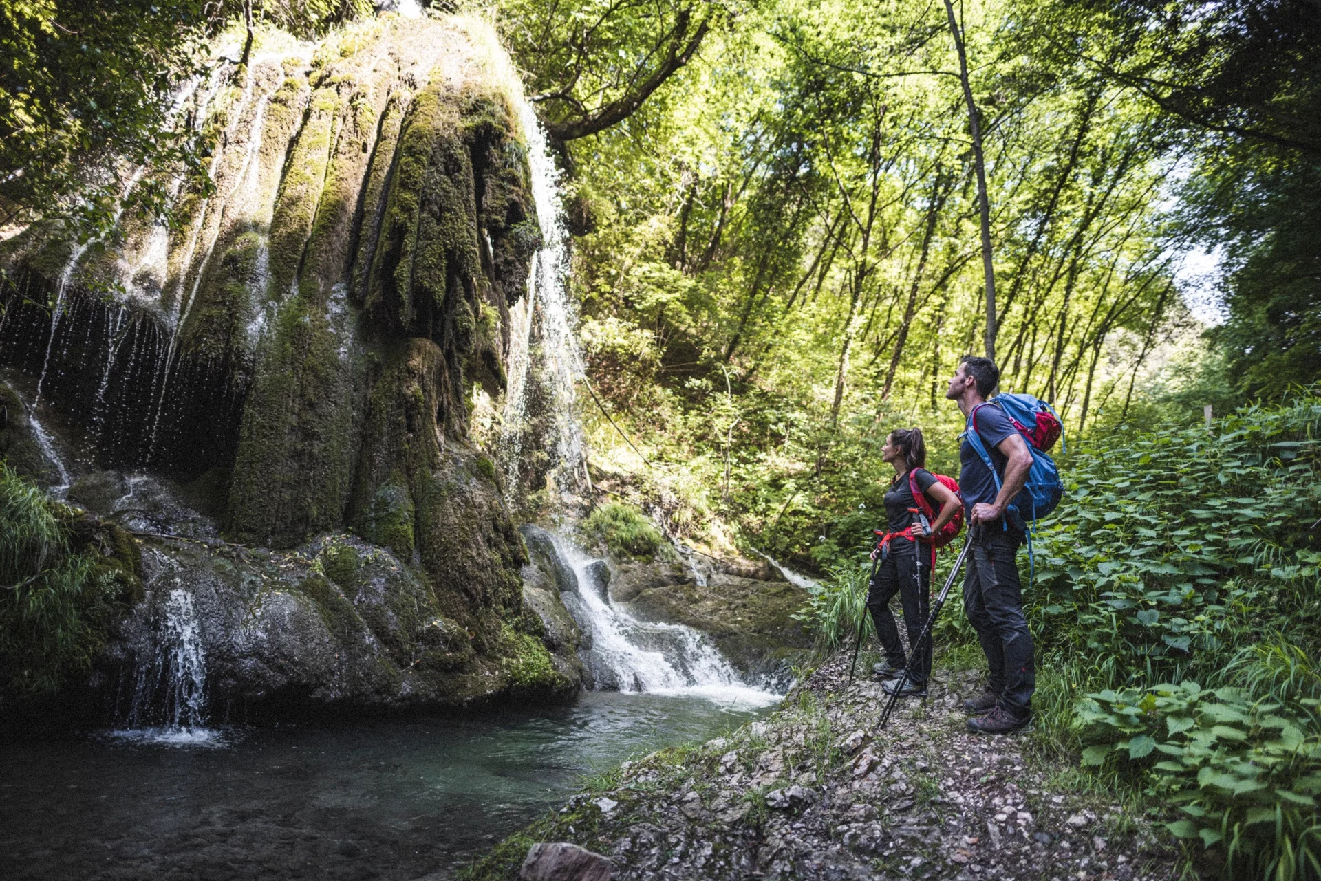Durante la stagione primaverile ed estiva si crea un’atmosfera incantevole grazie alla vegetazione che si colora di verde e fa da cornice ai salti d'acqua.